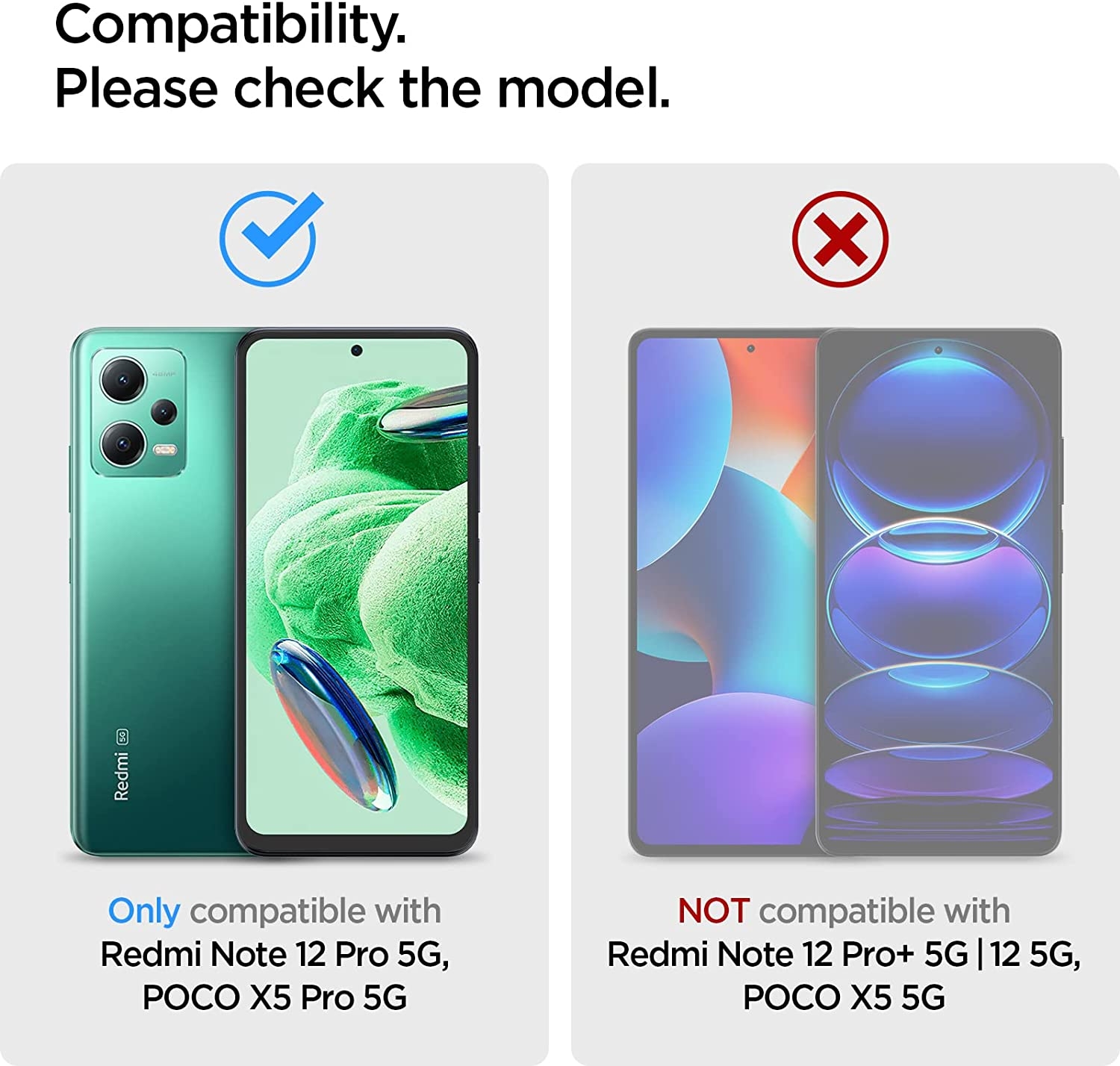 Η θήκη είναι συμβατή μόνο με το Xiaomi Redmi Note 12 Pro 5G / Poco X5 Pro και όχι με το Xiaomi Redmi Note 12 Pro Plus, Redmi Note 12 Pro Speed ή Poco X5.