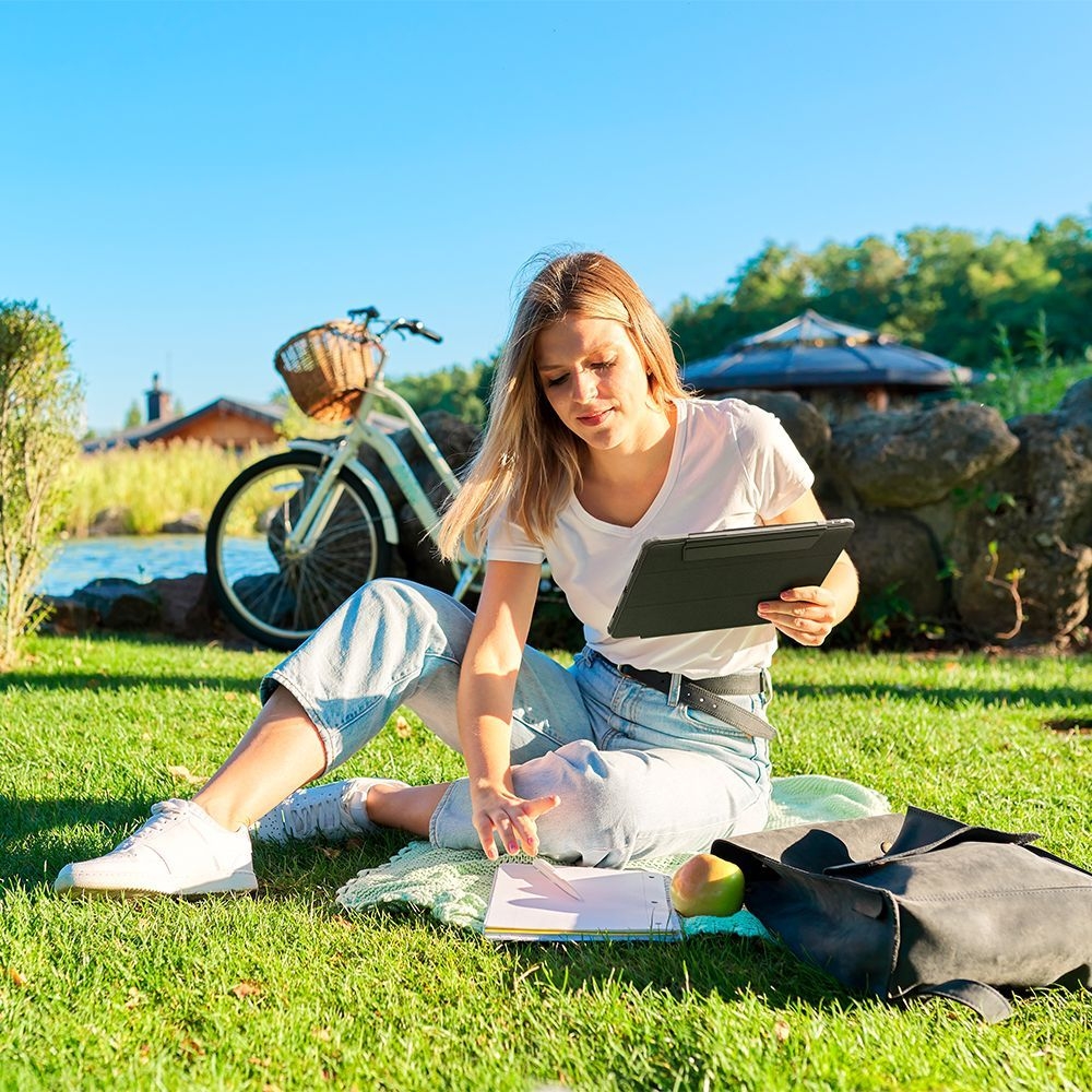 Με μία μόνο κίνηση, μπορείτε να γυρίσετε τη τριγωνική βάση προς τα κάτω και έτσι να δημιουργήσετε μια μικρή κλίση στο iPad, εάν το χρησιμοποιείτε για την εργασία σας ή για γραφιστικούς σκοπούς, σε περίπτωση που χρειάζεται να σχεδιάσετε κάτι για παράδειγμα.