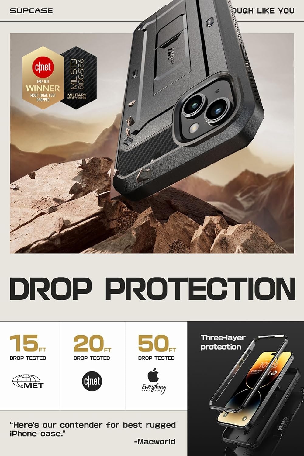 Η ανθεκτική και μοναδική θήκη Unicorn Beetle Pro από την Supcase είναι ειδικά σχεδιασμένη για το iPhone 15. Έχει κατασκευαστεί από ένα συνδυασμό μαλακού TPU και πολυκαρβονικού πλαστικού (PC), για να είναι εξαιρετικά ανθεκτική σε σκόνες, πτώσεις και χτυπήματα.