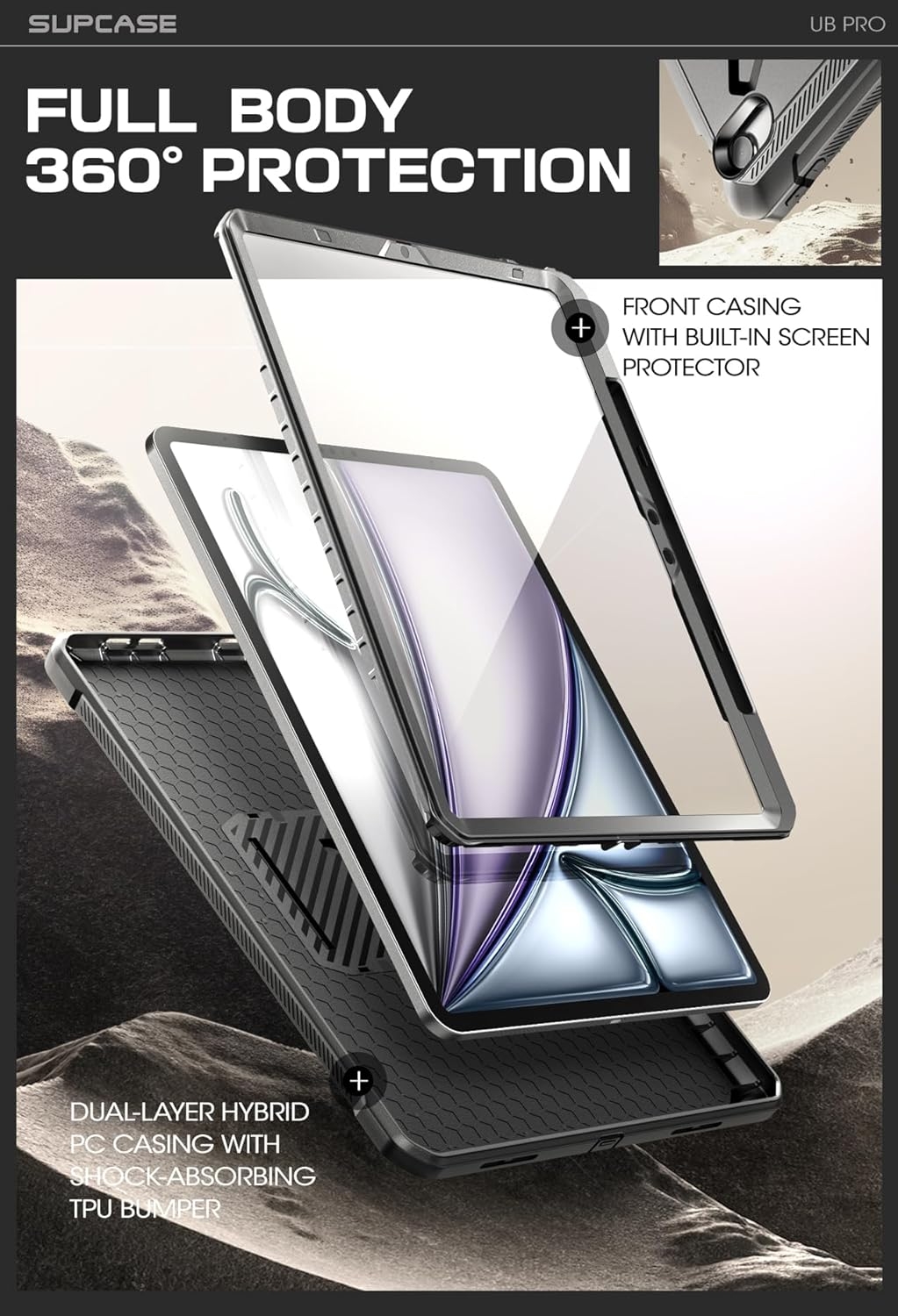 Η ανθεκτική και μοναδική θήκη Unicorn Beetle Pro από την Supcase είναι ειδικά σχεδιασμένη για το iPad Air 7 2025 11" / iPad Air 6 2024 11" / Air 5 2022 10.9" / Air 4 2020 10.9". Έχει κατασκευαστεί από ένα συνδυασμό μαλακού TPU και πολυκαρβονικού πλαστικού (PC), για να είναι εξαιρετικά ανθεκτική σε σκόνες, πτώσεις και χτυπήματα. Στη πίσω όψη της ακόμη, περιλαμβάνει μια στρώση από πιο ενισχυμένο TPU.