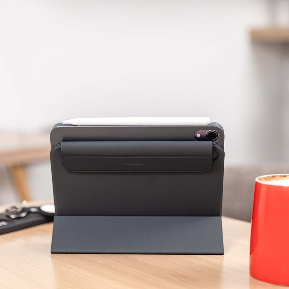 Χάρη στον έξυπνο σχεδιασμό της μπορεί να χρησιμοποιηθεί και σαν βάση στήριξης 5 θέσεων, ώστε να παρακολουθείτε το υλικό σας όπως video, φωτογραφίες, για gaming, ταινίες και να εργάζεστε με την επιθυμητή γωνία θέασης χωρίς να το κρατάτε στα χέρια σας, αλλά επίσης διαθέτει μαγνητικό slot για το Apple Pencil, για εύκολη σύζευξη και φόρτιση με έξυπνο μαγνητικό κούμπωμα.