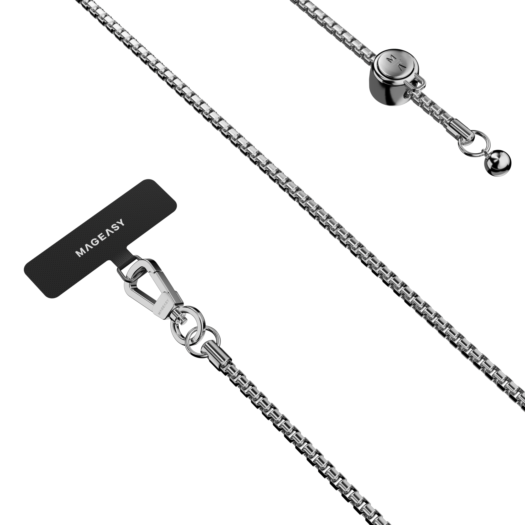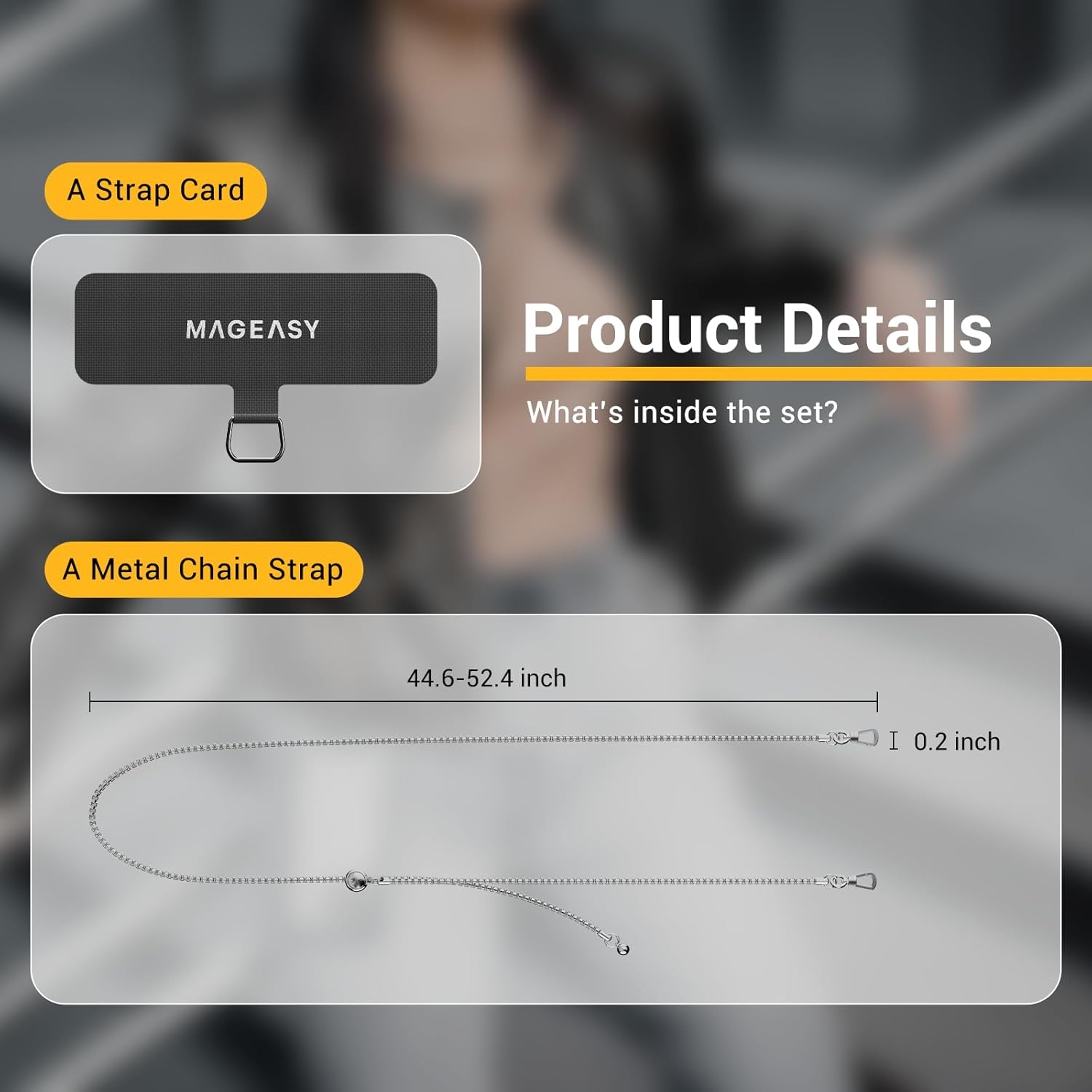 Με το ρυθμιζόμενο σχέδιο, ο ιμάντας προσαρμόζεται στο ύψος σας, εξασφαλίζοντας άνετη και ασφαλή εφαρμογή για όλους. Μην κρατάτε απλά το τηλέφωνό σας, φορέστε το με στυλ, κάντε μια κομψή δήλωση και ξεχωρίστε μέσα στο πλήθος με τον πιο κομψό λουράκι χιαστί κινητού MagEasy Metal Chain Strap & Strap Card!