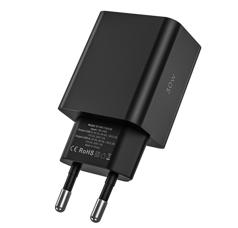 Ο Universal φορτιστής τοίχου NC30W της Tech-Protect σας επιτρέπει να φορτίζετε γρήγορα και με ασφάλεια όλες τις συσκευές σας, όπως τα αγαπημένα σας smartphone, μια φορητή κονσόλα ή ένα tablet. Είναι εξοπλισμένος με δύο θύρες φόρτισης, μία Type-C, PD30W και μία USB-A, QC3.0.