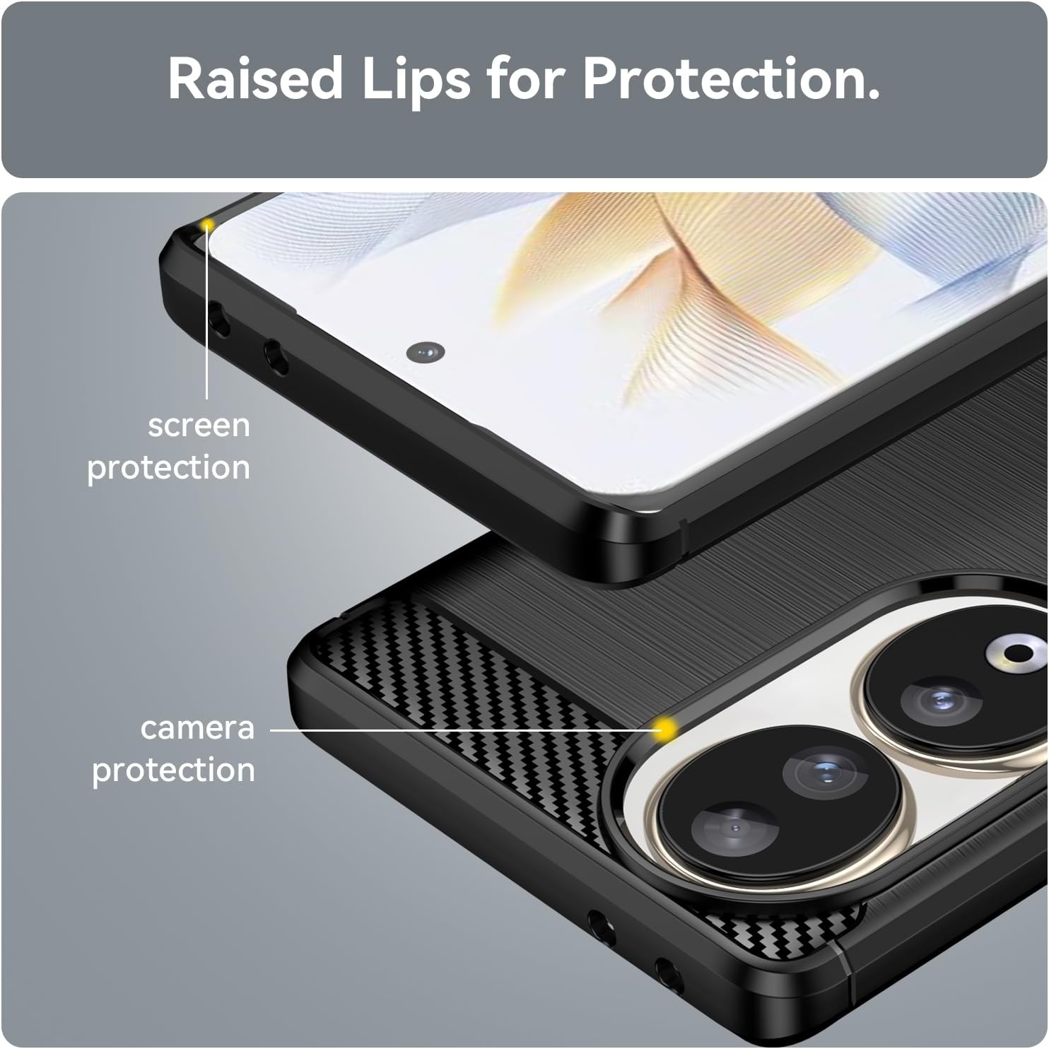 Κατασκευασμένη από θερμοπλαστική πολυουρεθάνη (TPU) που απορροφά τους κραδασμούς, είναι ελαστική με φινίρισμα από ανθρακονήματα και εσωτερικά με κυψελοειδές σχεδιασμό για να προστατεύει το Honor 90 / 80 από γρατσουνιές, φθορές, πτώσεις ή χτυπήματα.