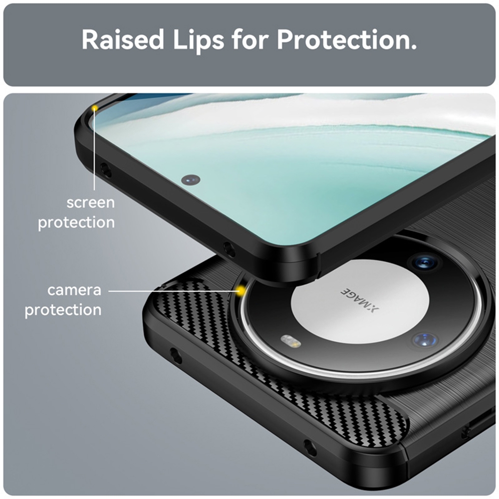 Κατασκευασμένη από θερμοπλαστική πολυουρεθάνη (TPU) που απορροφά τους κραδασμούς, είναι ελαστική με φινίρισμα από ανθρακονήματα και εσωτερικά με κυψελοειδές σχεδιασμό για να προστατεύει το Huawei Mate 60 από γρατσουνιές, φθορές, πτώσεις ή χτυπήματα.