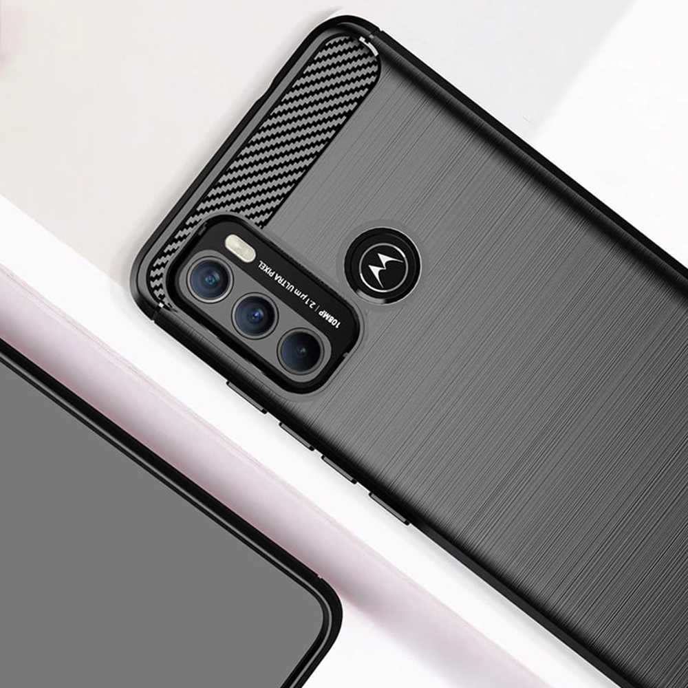 Κατασκευασμένη από θερμοπλαστική πολυουρεθάνη (TPU) που απορροφά τους κραδασμούς, είναι ελαστική με φινίρισμα από ανθρακονήματα και εσωτερικά με κυψελοειδές σχεδιασμό για να προστατεύει το Motorola Moto G60 από γρατσουνιές, φθορές, πτώσεις ή χτυπήματα.