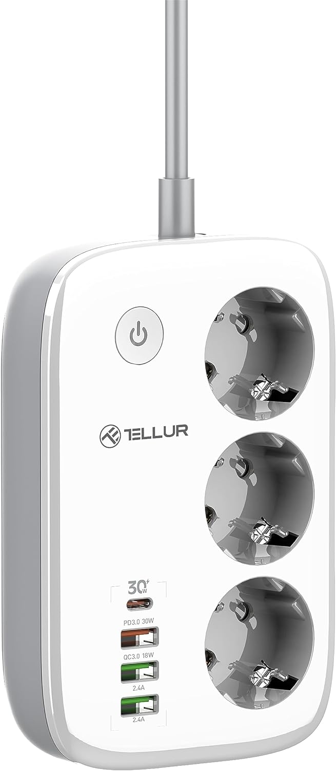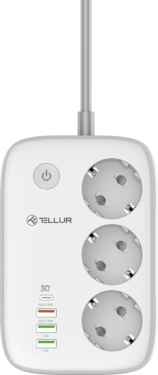 Το πολύπριζο Smart Wi-Fi Power Strip της Tellur είναι η τέλεια λύση για όλες τις ανάγκες φόρτισης και παροχή ρεύματος στον χώρο σας! Είναι εξοπλισμένο με προηγμένες λειτουργίες, όπως πρόσθετες θύρες φόρτισης, 1 x Type C PD, 30W, 1 x USB-A QC 3.0 18W και 2 x USB-A x 2.4A 12W, ώστε να έχετε όλη την ισχύ που χρειάζεστε και να έχετε όλες τις συσκευές σας φορτισμένες και έτοιμες για χρήση.