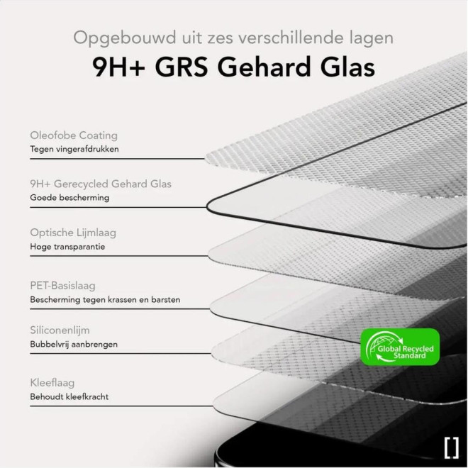 Αυτό το premium αντιχαρακτικό γυαλί, είναι κατασκευασμένο από από 60% ανακυκλωμένο υλικό και διαθέτει πιστοποίηση GRS, Παγκόσμιο Πρότυπο Ανακυκλωμένων Υλικών, ενώ προσφέρει έως και 7 φορές μεγαλύτερη αντοχή σε σύγκριση με το κλασικό σκληρυμένο γυαλί. Είναι σχεδιασμένο με ένα καινοτόμο απλικατέρ, το οποίο ενσωματώνεται στην οικολογική συσκευασία, η οποία διαθέτει πιστοποίηση FSC, δηλαδή η συσκευασία είναι κατασκευασμένη εξ ολοκλήρου από ανακυκλωμένα υλικά και τυπωμένη με οικολογικό μελάνι σόγιας.