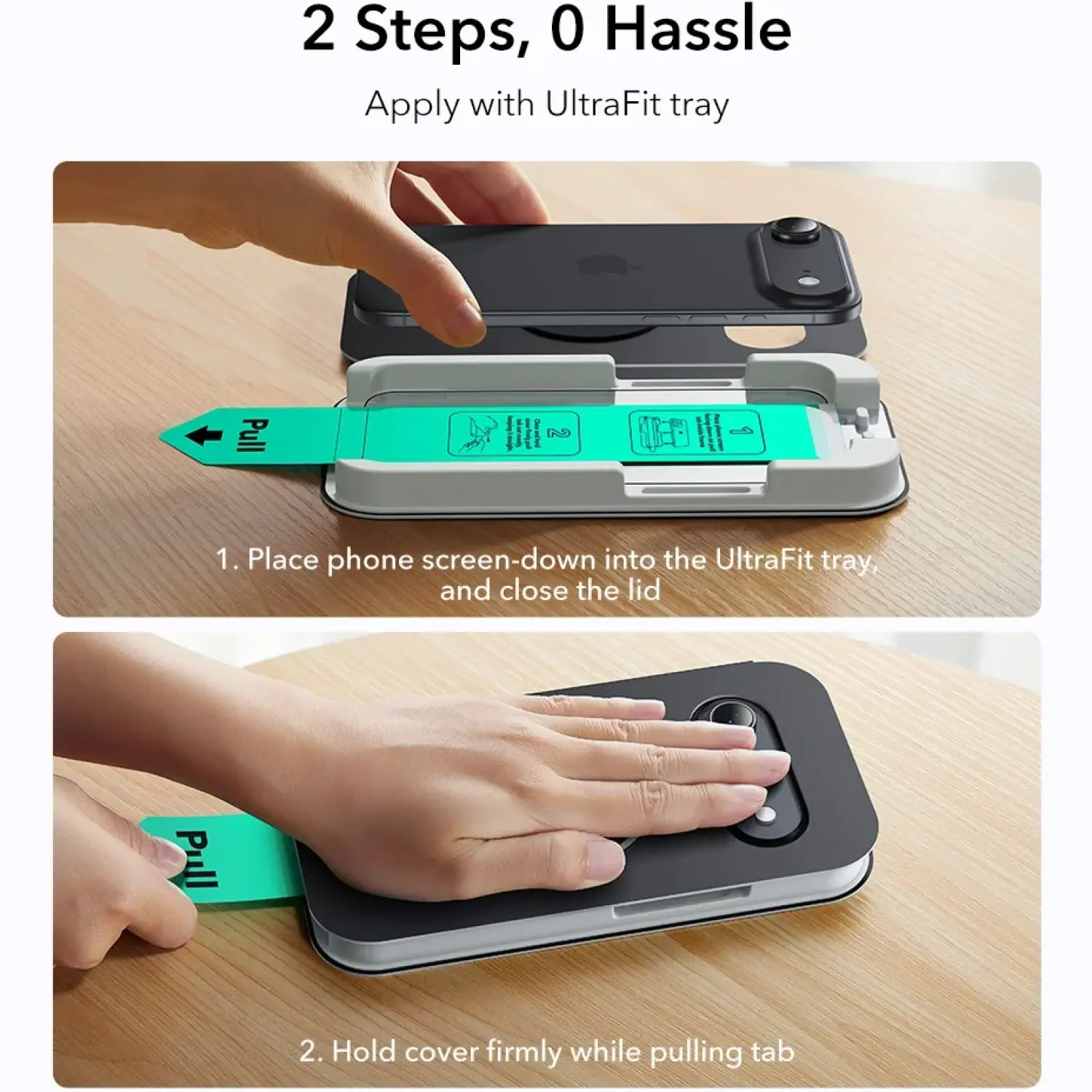 Σας εξασφαλίζει μία ομοιόμορφη και αποτελεσματική εφαρμογή, με ευθυγράμμιση σε τέσσερις γωνίες για σταθερό και ασφαλές αποτέλεσμα, μειώνοντας την ακούσια κίνηση. Η λωρίδα απομάκρυνσης φυσαλίδων αέρα εξασφαλίζει τη γρήγορη απομάκρυνση του αέρα και μειώνει τις ατέλειες κατά την εφαρμογή. Η ταινία τραβήγματος, αφαιρεί τη σκόνη για εύκολη εφαρμογή, ενώ ο δίσκος εξασφαλίζει την ακριβή ευθυγράμμιση.