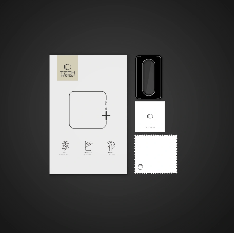 Αποτελείται από ένα γυαλί για τον φακό και είναι κατασκευασμένο από αλουμίνιο περιμετρικά και αντιχαρακτικό γυαλί για τον φακό της κάμερας, προστατεύοντας από προσκρούσεις, γρατζουνιές και άλλου είδους φθορές. Το σετ περιλαμβάνει ένα πλαίσιο στήριξης, χάρη στο οποίο μπορείτε να τοποθετήσετε τέλεια το αντιχαρακτικό γυαλί.