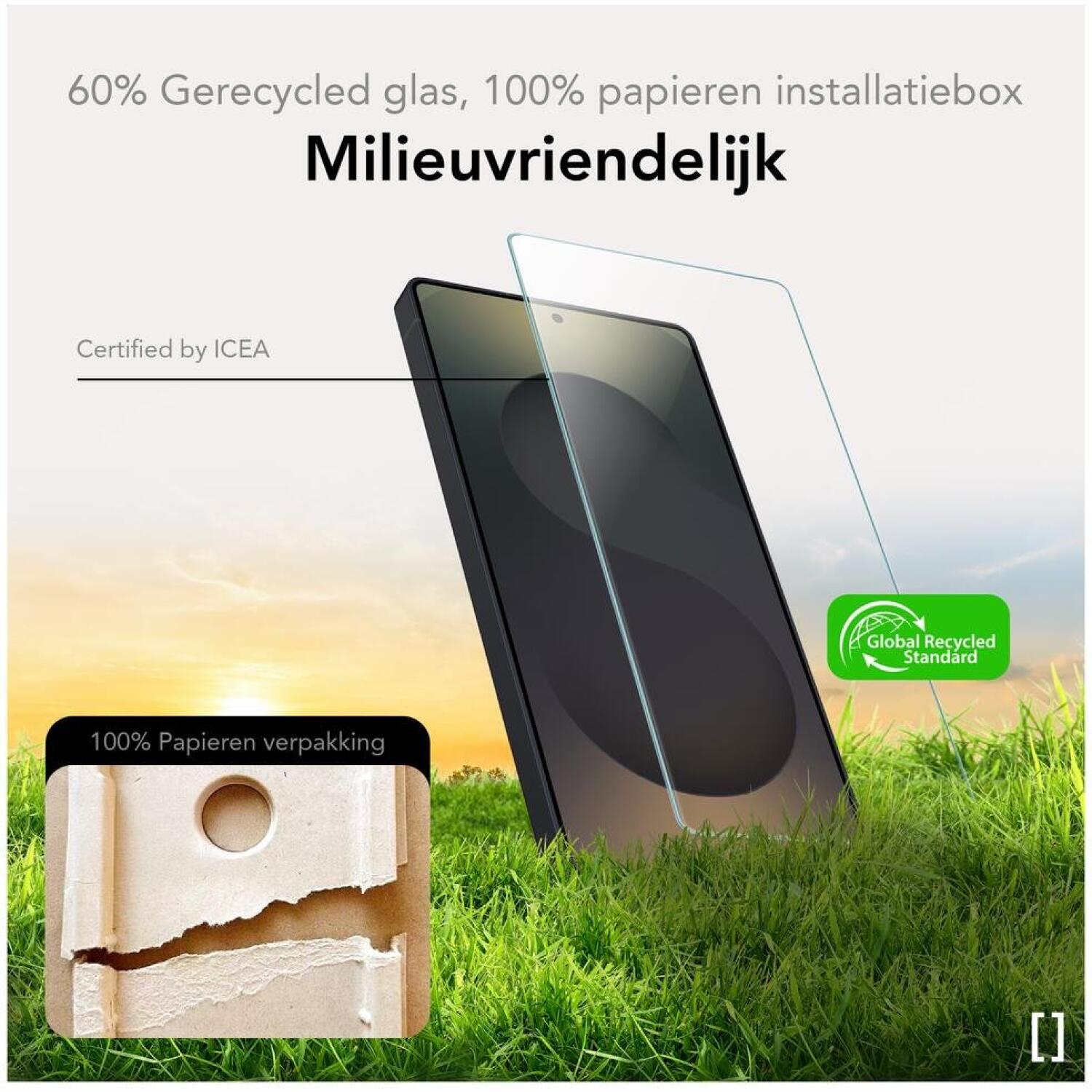 Αυτό το premium αντιχαρακτικό γυαλί, είναι κατασκευασμένο από από 60% ανακυκλωμένο υλικό και διαθέτει πιστοποίηση GRS, Παγκόσμιο Πρότυπο Ανακυκλωμένων Υλικών, ενώ προσφέρει έως και 7 φορές μεγαλύτερη αντοχή σε σύγκριση με το κλασικό σκληρυμένο γυαλί. Είναι σχεδιασμένο με ένα καινοτόμο απλικατέρ, το οποίο ενσωματώνεται στην οικολογική συσκευασία, η οποία διαθέτει πιστοποίηση FSC, δηλαδή η συσκευασία είναι κατασκευασμένη εξ ολοκλήρου από ανακυκλωμένα υλικά και τυπωμένη με οικολογικό μελάνι σόγιας.
