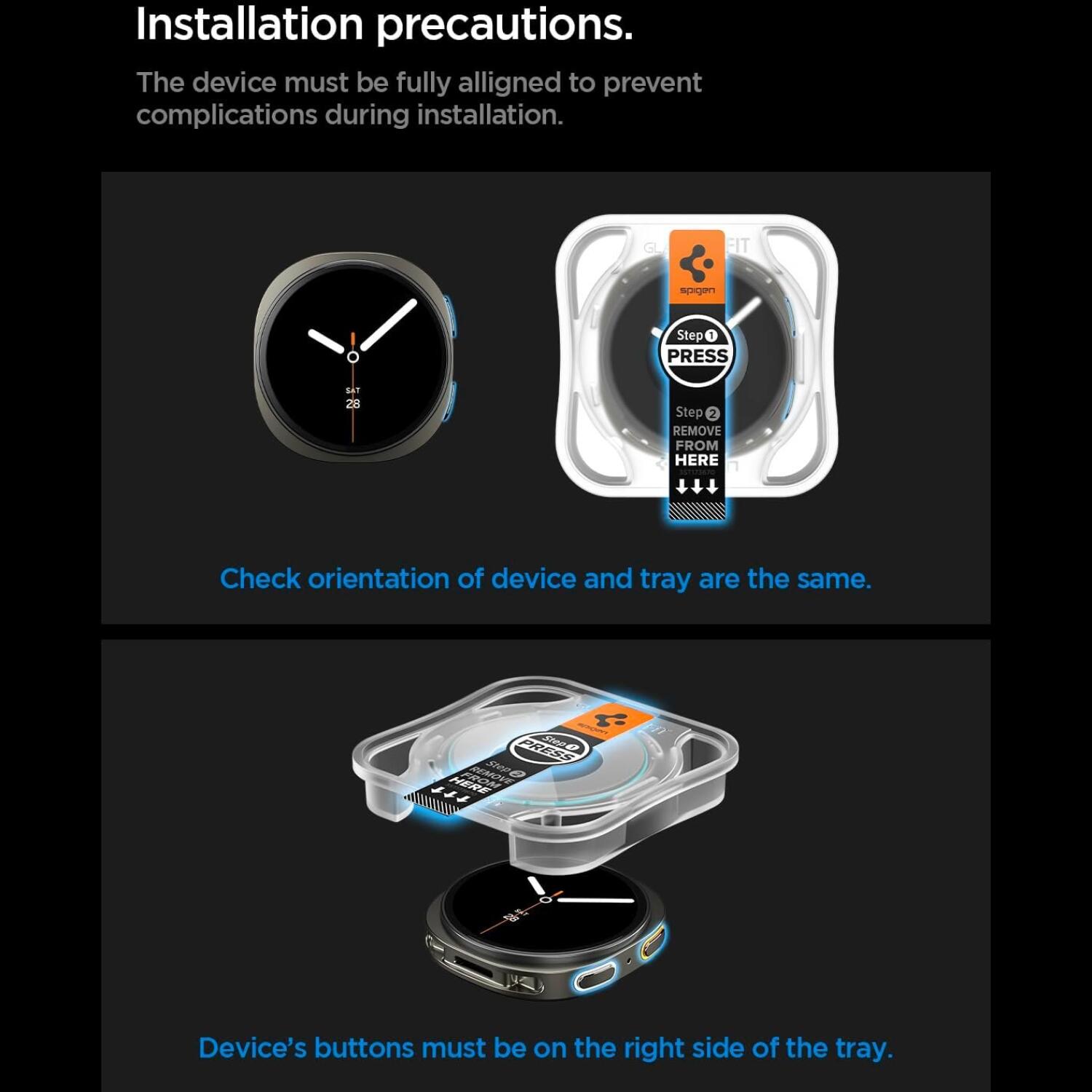 Το νέο Glas.tR EZ Fit από την Spigen έρχεται με έναν καινοτόμο δίσκο που έχει σχεδιαστεί για να εξαλείφει το χρόνο που χάνεται για να επιτευχθεί η μεγαλύτερη ευθυγράμμιση και είναι σχεδιασμένο για να εφαρμόζει τέλεια στο Samsung Galaxy Watch 8 44mm και να προστατεύει την οθόνη του από γρατσουνιές και φθορές!