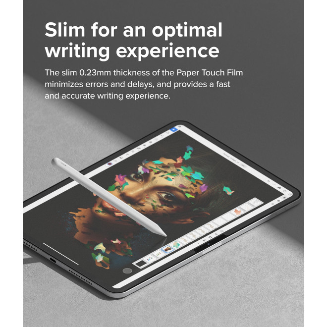 Με τη διαφανή, ματ επιφάνειά του, εξασφαλίζει προστασία από λάμψη και δαχτυλικά αποτυπώματα, προσφέροντας μια μοναδική εμπειρία σχεδίασης και γραφής. Το ειδικό φινίρισμα και η υψηλή ευαισθησία της επιφάνειας επιτρέπουν την πλήρη λειτουργία του Apple Pencil σας, επιτρέποντάς σας να σχεδιάζετε και να γράφετε με ακρίβεια και άνεση, ακριβώς όπως σε πραγματικό χαρτί.