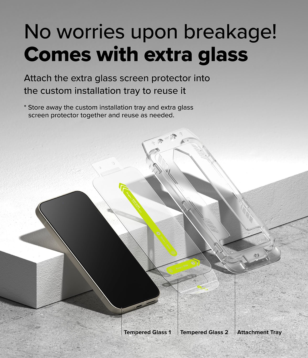 Το γυαλί είναι ειδικά αφιερωμένο στην προστασία της οθόνης κατά τη διάρκεια μιας απροσδόκητης πτώσης. Τοποθετείται εύκολα, καθώς περιλαμβάνει ένα εργαλείο εγκατάστασης Easy Slide, το οποίο κάνει την εφαρμογή ευκολότερη και πιο ακριβή, εξασφαλίζοντας την απρόσκοπτη εγκατάσταση.