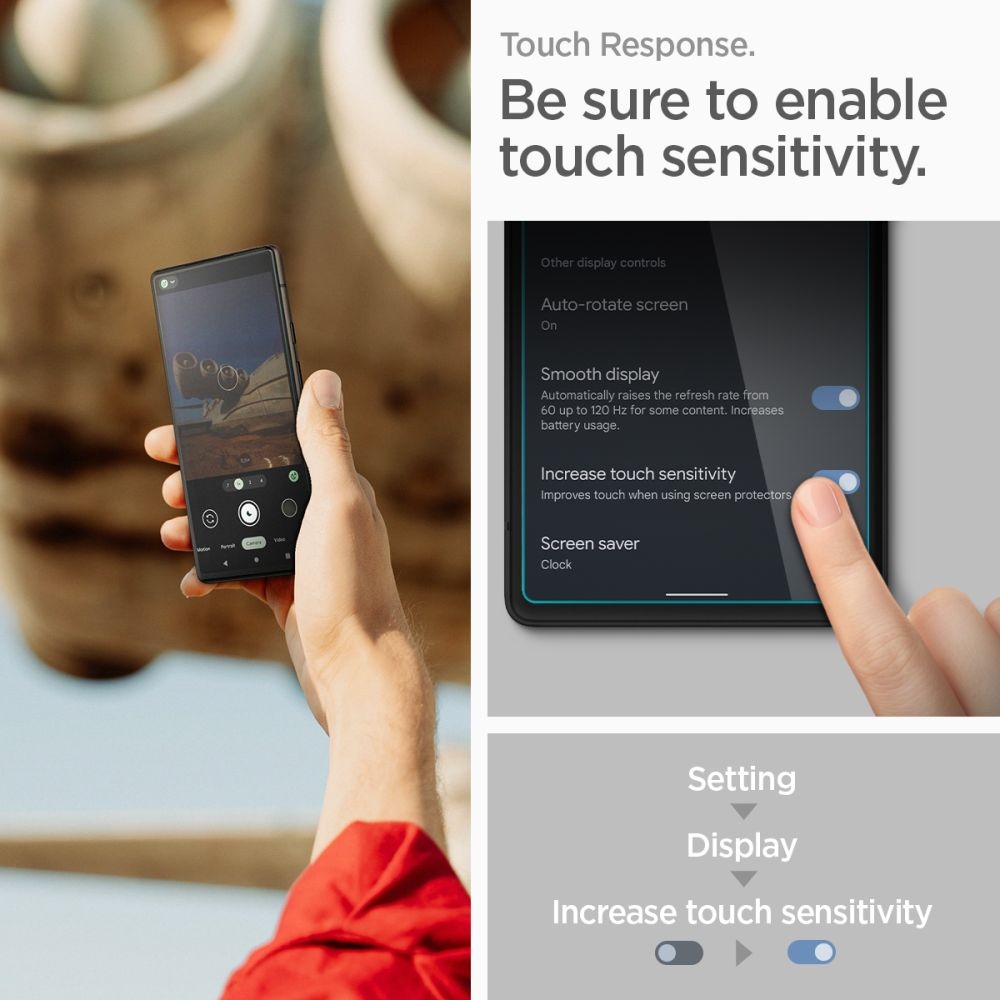 Δεν χρειάζεται πλέον να ανησυχείτε για ανομοιόμορφη εφαρμογή του tempered glass, αφού εφαρμόζει τέλεια στο αγαπημένο σας Google Pixel 6a. Με τεχνολογία Case Friendly έτσι ώστε να είναι συμβατό με κάθε Spigen θήκη αλλά και με σχεδόν όλες τις υπόλοιπες.