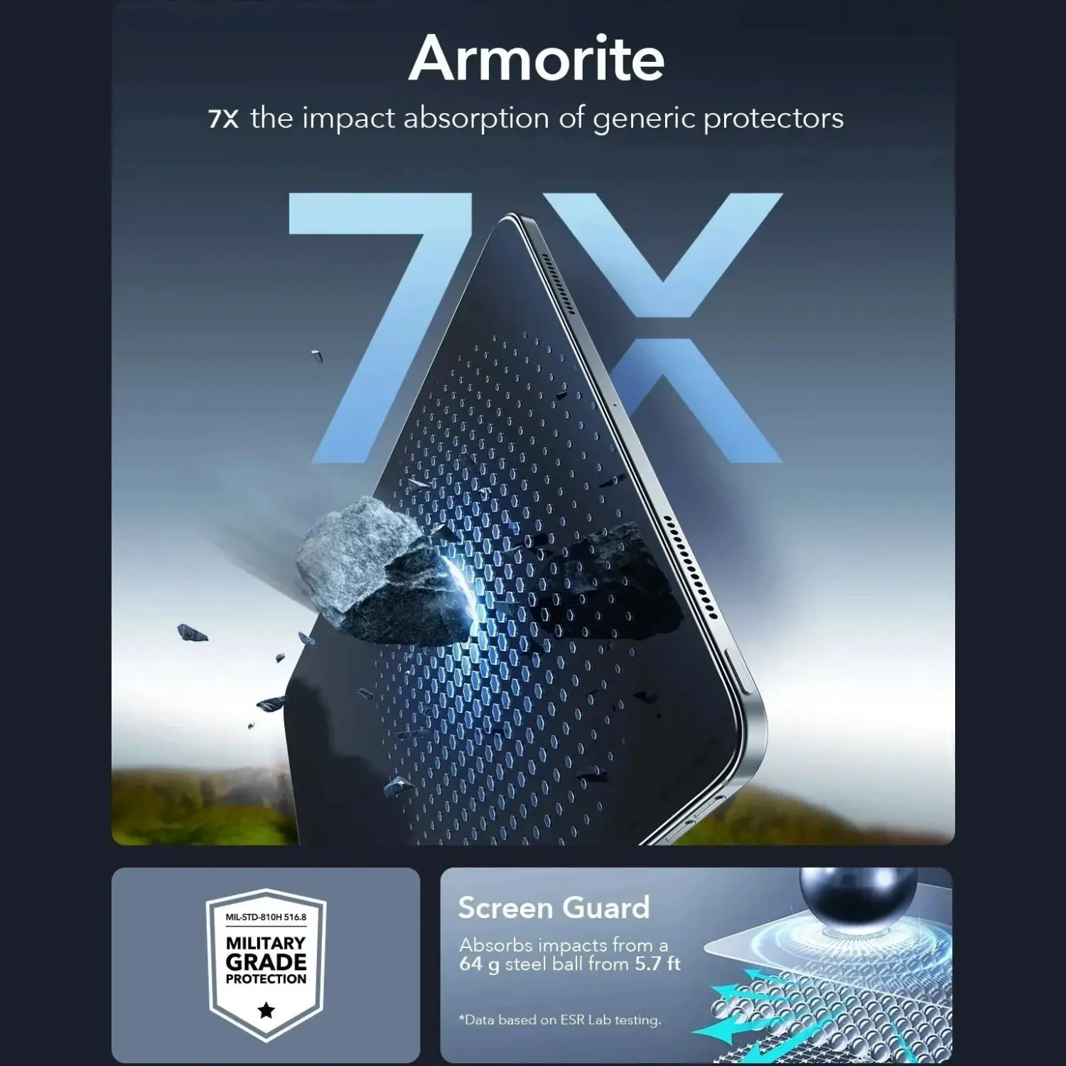 Επίσης είναι το πρώτο γυαλί προστασίας το οποίο είναι πιστοποιημένο σύμφωνα με τα στρατιωτικά πρότυπα και έχει λάβει πιστοποίηση MIL-STD-810H 516.8, αυτό σημαίνει ότι είναι 7 φορές πιο ανθεκτικό από τα κοινά tempered glass της αγοράς, καθώς είναι σχεδιασμένο για να αντέχει σε κρούσεις, προσφέροντας κορυφαία προστασία για την οθόνη σας. Δεν χρειάζεται πλέον να ανησυχείτε για την ανομοιόμορφη εφαρμογή του tempered glass, αφού εφαρμόζει τέλεια στο αγαπημένο σας iPad Pro 11" 2025 / 2024 καλύπτοντας όλη την οθόνη.
