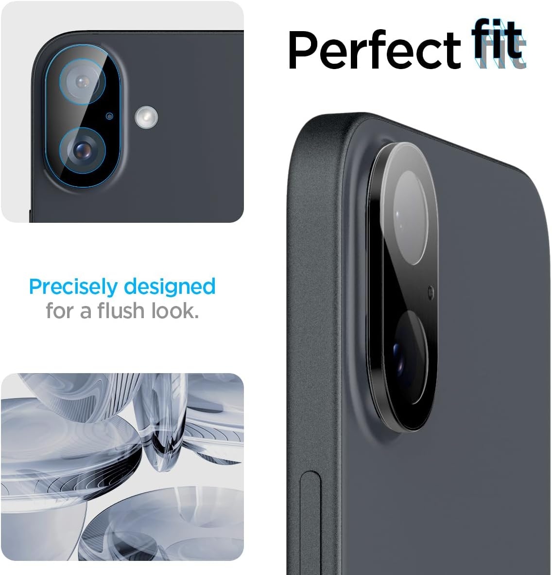 Αντιχαρακτικό γυάλινο Spigen Optik.tR Camera Lens Protector Tempered Glass για το iPhone 16 / 16 Plus από την Spigen. Κατασκευασμένο από γυαλί που έχει υποστεί ειδική θερμική επεξεργασία για να αυξηθεί η αντοχή του σε προσκρούσεις γρατσουνιές και άλλου είδους φθορές.
