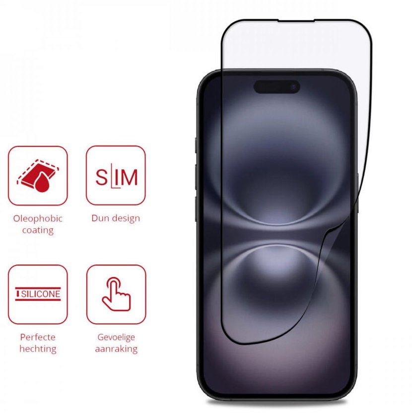 Hybrid Glass iPhone 16 Plus Rosso FullFace Αντιχαρακτικό Υβριδικό Προστατευτικό Οθόνης - Black (8719246461071)