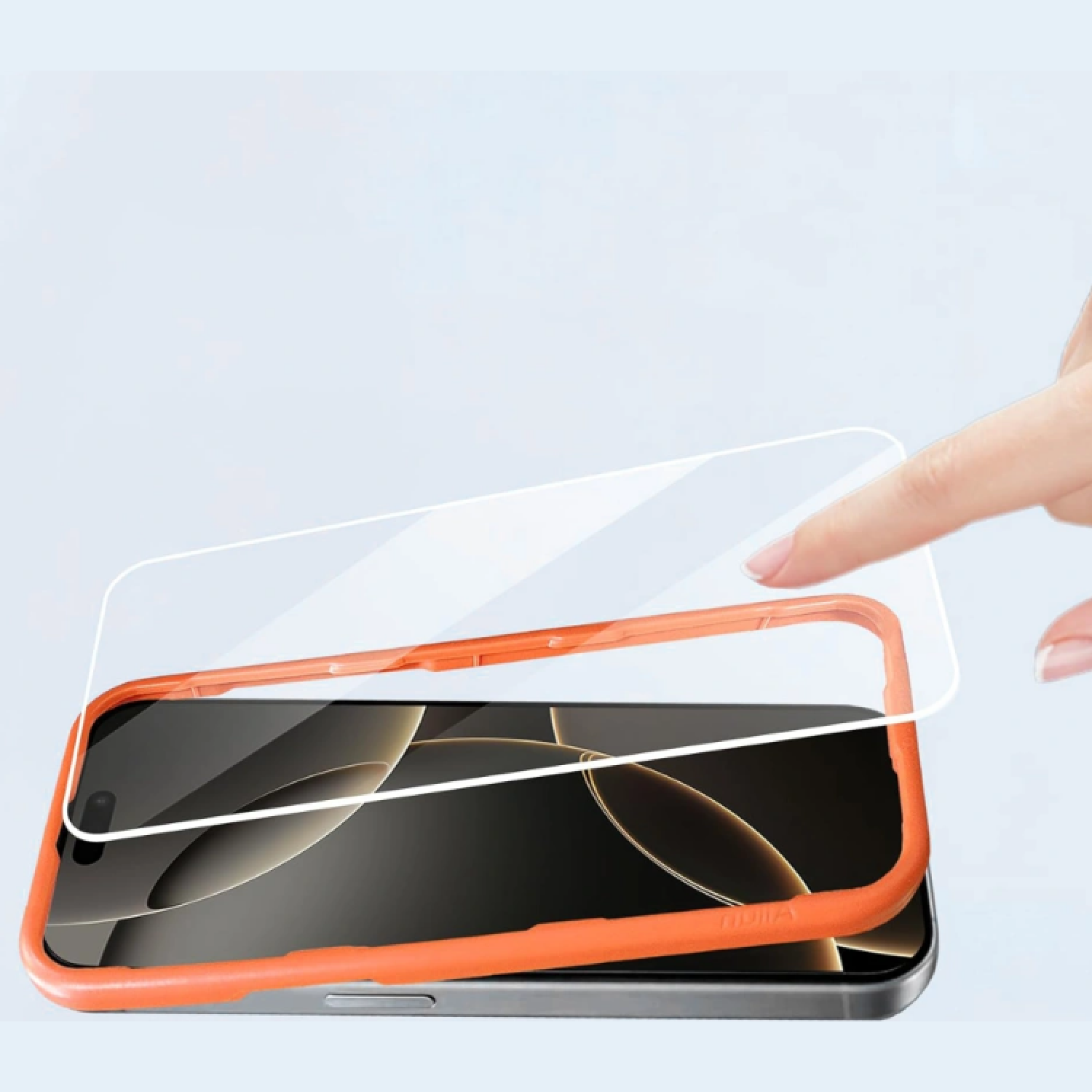 Σημείωση: Πριν εφαρμόσετε το Tempered Glass, είναι σημαντικό να καθαρίσετε σχολαστικά την οθόνη και την κάμερα του iPhone 17 Pro / 16 Pro. Καθαρίζοντας πρώτα την οθόνη και την κάμερα, αποτρέπετε τη σκόνη, τα δαχτυλικά αποτυπώματα και άλλες βρομιές μεταξύ του Protector και της οθόνης.