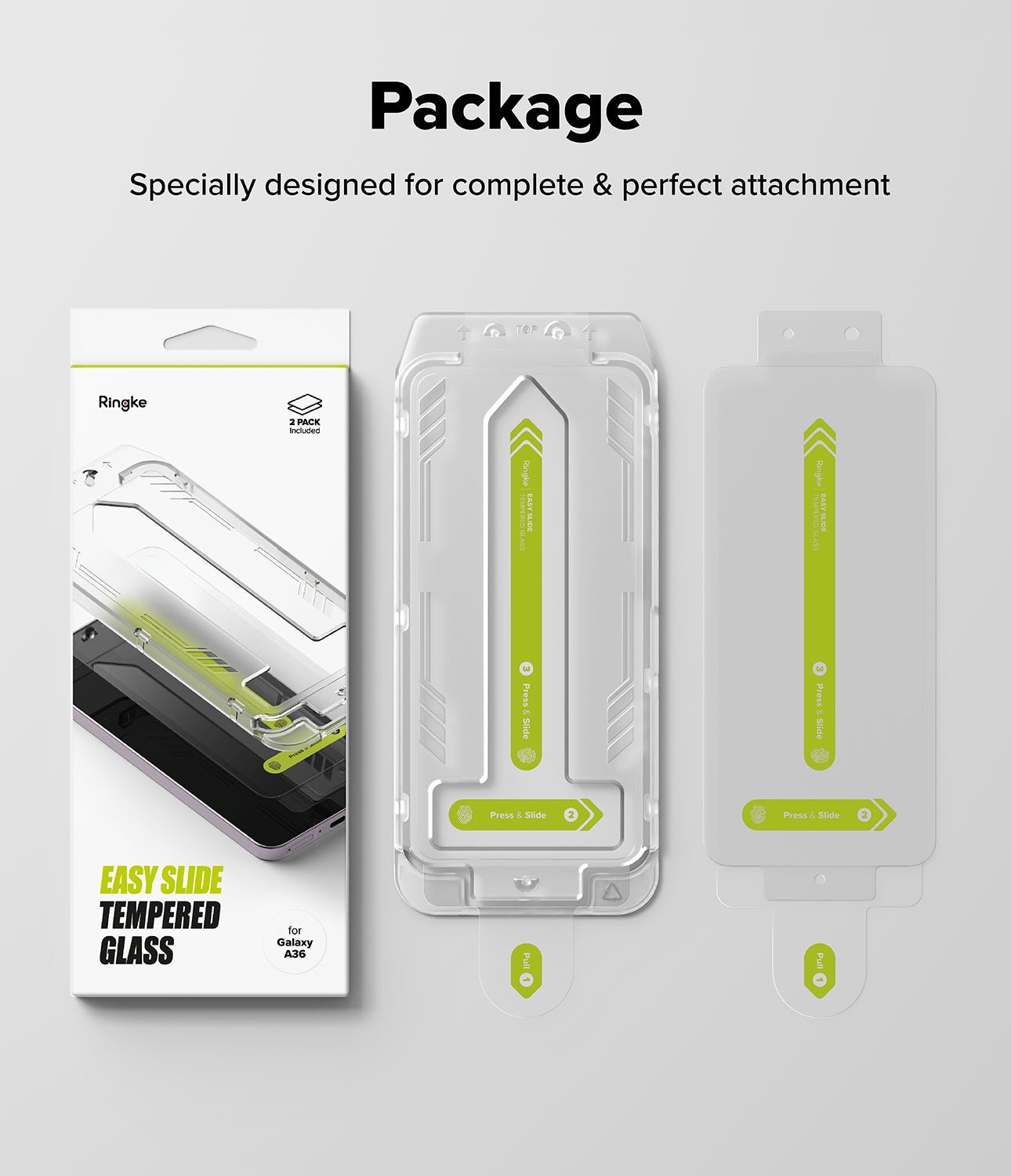 Το υψηλής ποιότητας αντιχαρακτικό γυαλί προστασίας οθόνης Easy Slide Tempered Glass της Ringke εφαρμόζει τέλεια στο αγαπημένο σας Samsung Galaxy A36 και προστατεύει την οθόνη του από γρατσουνιές και φθορές.