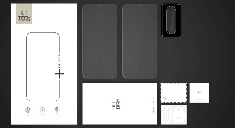 Η συσκευασία περιλαμβάνει: 2 x Tempered Glass οθόνης Tech-Protect, 1 x Tempered Glass για την κάμερα, 1 x Κιτ εγκατάστασης.