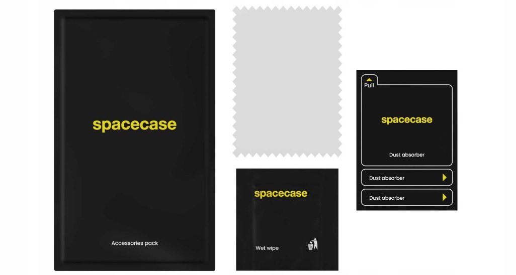 Η συσκευασία περιλαμβάνει: 2 x Tempered Glass Spacecase, 1 x Κιτ με οδηγό εγκατάστασης.