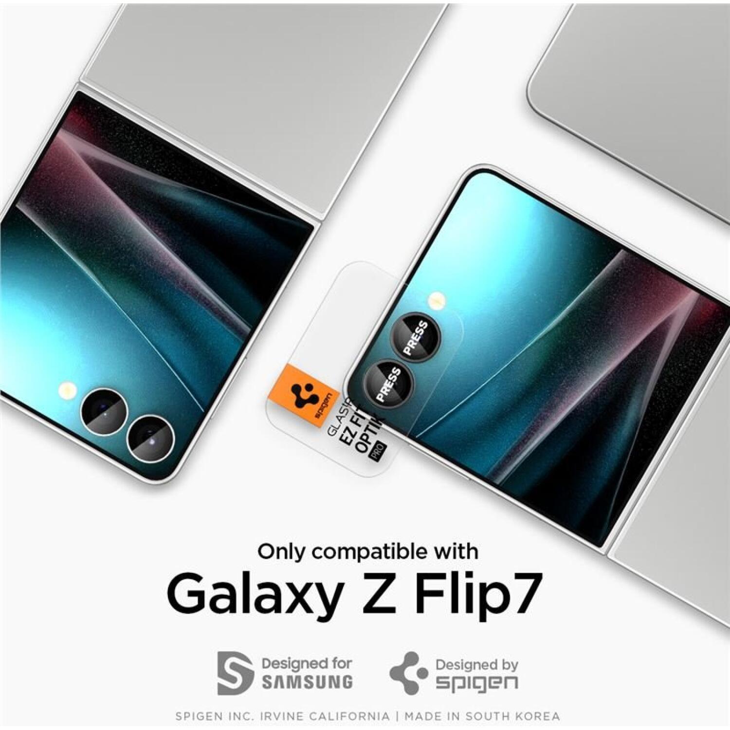 Το Camera Lens Protector είναι συμβατό μόνο με το Samsung Galaxy Z Flip7 και όχι με το Samsung Galaxy Z Flip7 FE, Z Flip6, Z Flip5, Z Flip4, Z Flip3 5G, Z Flip 5G ή Z Flip.