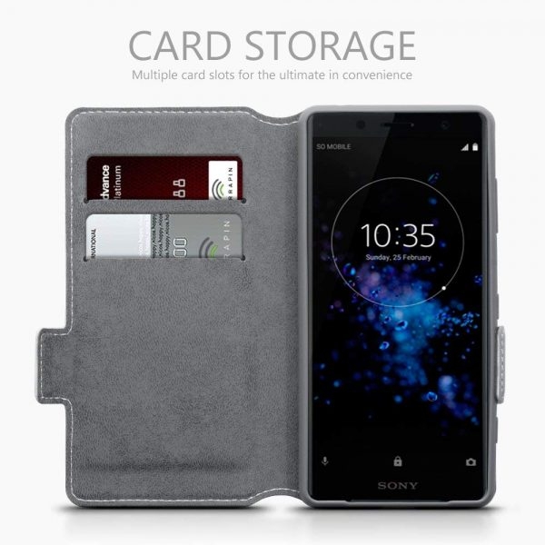 Η θήκη - πορτοφόλι είναι ειδικά σχεδιασμένη για το Sony Xperia XZ2 Compact, ενώ διαθέτει 2 θήκες για πιστωτικές κάρτες. Με προσεγμένη ραφή και μαγνητικό κλιπ για ευκολότερη χρήση.