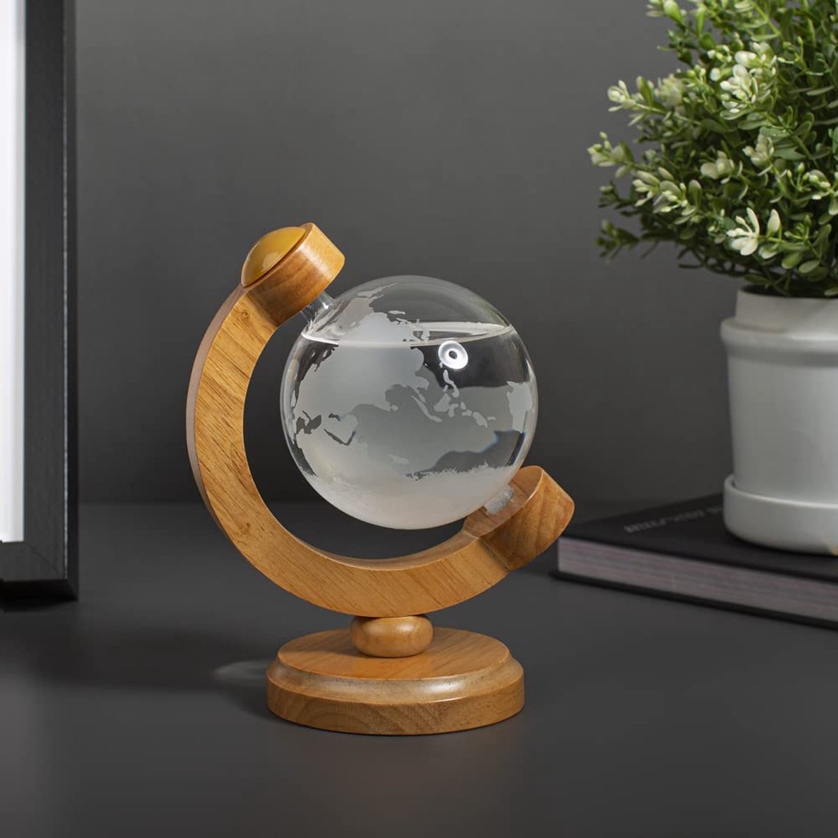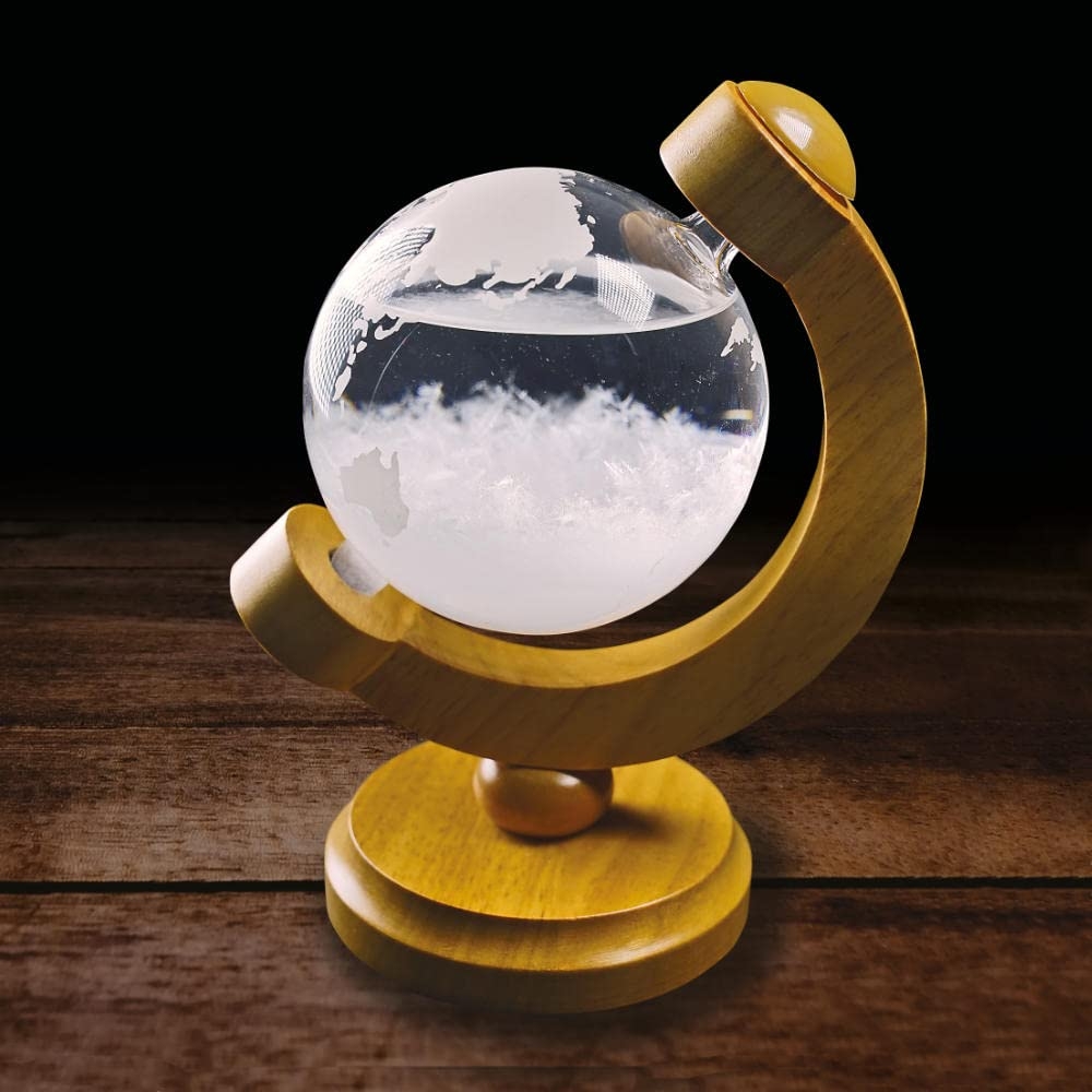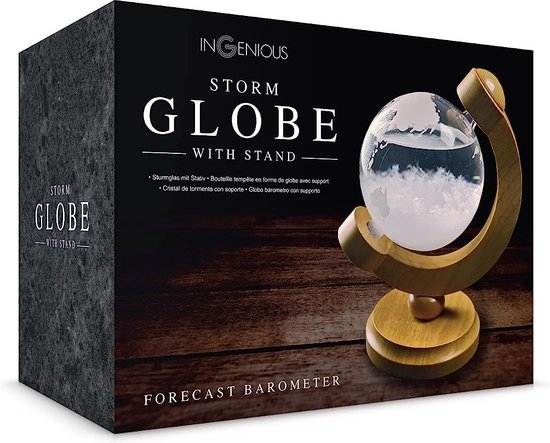 Το Storm Globe with Stand είναι ένα όμορφα σχεδιασμένο γυαλί καταιγίδας σε σχήμα υδρογείου, τοποθετημένο σε μια κομψή ξύλινη βάση. Αυτό όχι μόνο δίνει στο κρύσταλλο μια εντυπωσιακή εμφάνιση, αλλά το καθιστά επίσης ένα λειτουργικό διακοσμητικό κομμάτι που ταιριάζει σε κάθε εσωτερικό χώρο. Το κρύσταλλο καταιγίδας είναι ερμητικά σφραγισμένο, επομένως δεν επηρεάζεται από περιβαλλοντικούς παράγοντες.