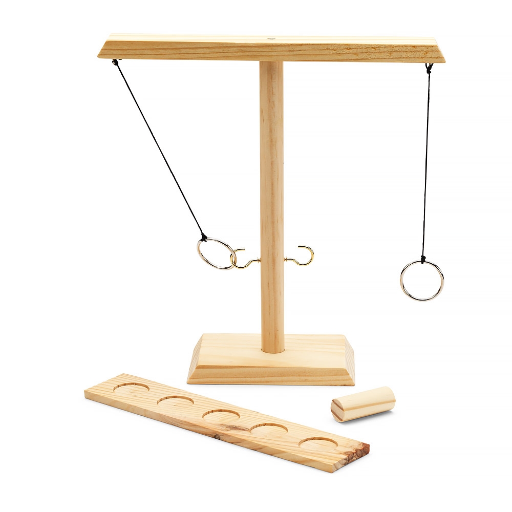 Το παιχνίδι είναι συναρπαστικό, τοποθετήστε το ξύλινο πιόνι ή το σφηνάκι στον κεντρικό κύκλο. Πάρτε τον κρίκο και προσπαθήστε κάθε φορά να το προσγειώσετε στο γάντζο. Μετακινήστε το ξύλινο πιόνι ή το σφηνάκι, μία θέση προς τον αντίπαλό σας όταν καταφέρνετε να προσγειώσετε τον κρίκο στον γάντζο. Ο παίκτης που κερδίζει είναι ο πρώτος παίκτης που θα βγάλει το ξύλινο πιόνι από το ταμπλό στο τέλος του αντιπάλου! Αν παίζετε το παιχνίδι ποτού, ο αντίπαλός σας πρέπει να πιει το σφηνάκι!