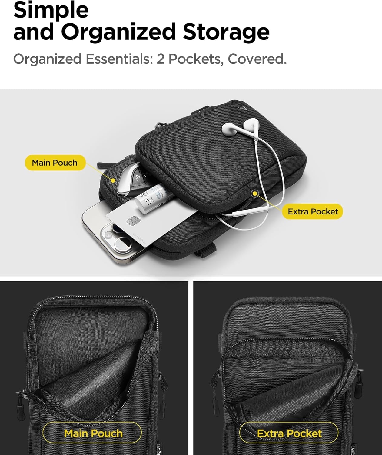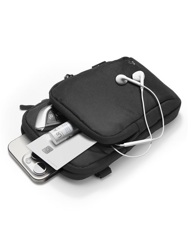 Αυτή η μίνι τσάντα χιαστί διαθέτει δύο ευρύχωρες θήκες, μία μπροστινή και μία κύρια, που προσφέρουν άνετο χώρο για την μεταφορά ενός smartphone έως 6,9 ίντσες, καθώς και για μικροαντικείμενα όπως κλειδιά, ακουστικά, πορτοφόλι ή κάρτες. Το ανθεκτικό της φερμουάρ εξασφαλίζει το ασφαλές κλείσιμο και την εύκολη πρόσβαση στα αντικείμενά σας.