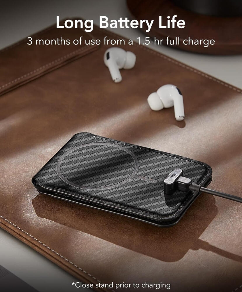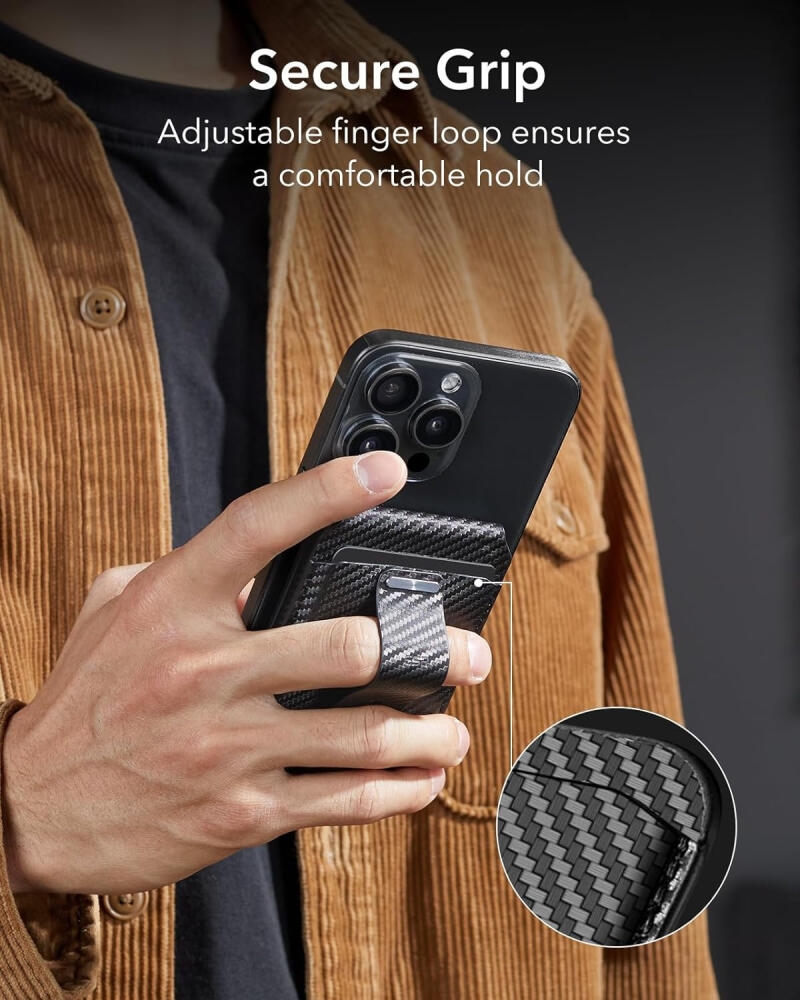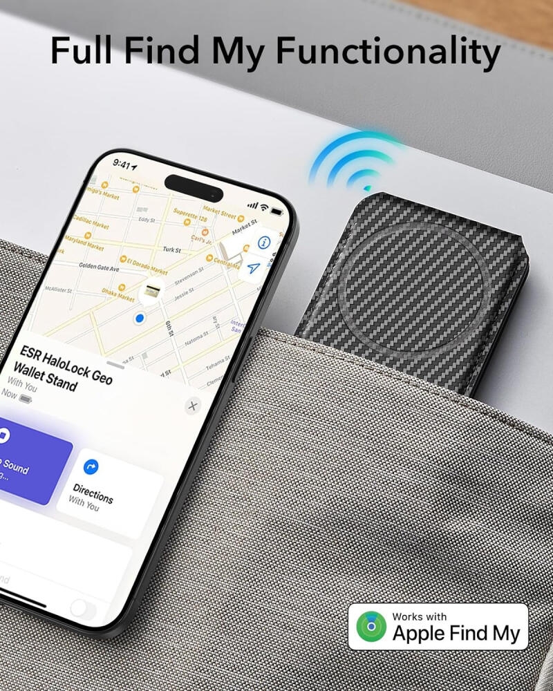 Το κομψό σχέδιο από ανθρακονήματα προσδίδει μια κορυφαία εμφάνιση, ενώ η λεπτή κατασκευή της θήκης εξασφαλίζει ότι δεν προσθέτει όγκο, επιτρέποντάς σας να την τοποθετείτε εύκολα στην τσέπη σας μαζί με το τηλέφωνό σας. Επίσης, είναι συμβατή με την εφαρμογή Apple Find My, ώστε να μπορείτε να εντοπίζετε την τοποθεσία της σε πραγματικό χρόνο, με τον χαρακτηριστικό ήχο για να τη βρείτε και να λαμβάνετε ειδοποιήσεις.
