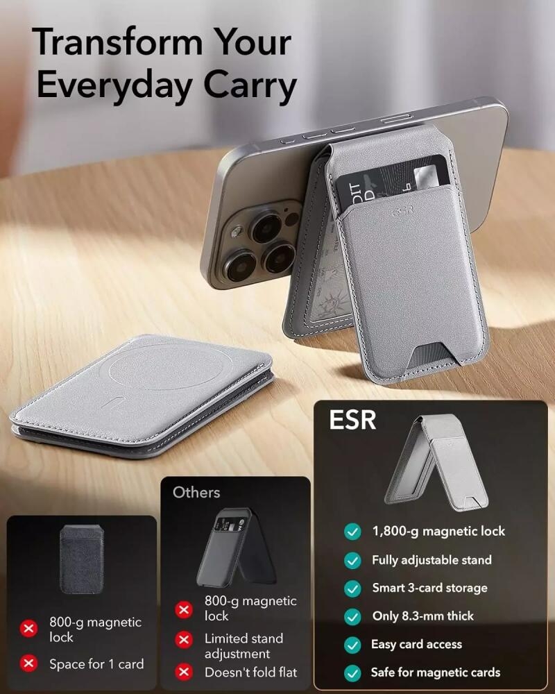 Το HaloLock Wallet Stand της ESR, διαθέτει ισχυρούς μαγνήτες και είναι ειδικά κατασκευασμένο ώστε να αντέχει στις απαιτήσεις της καθημερινής σας ζωής, καθώς οι ενσωματωμένοι μαγνήτες παρέχουν 70% ισχυρότερο μαγνητικό κλείσιμο από το official μαγνητικό πορτοφόλι της Apple!