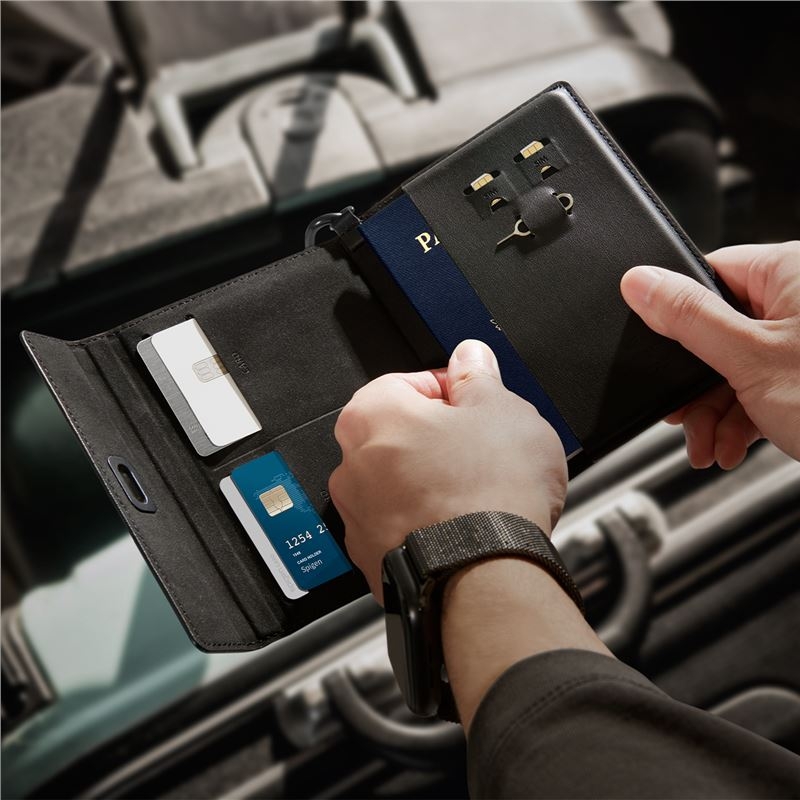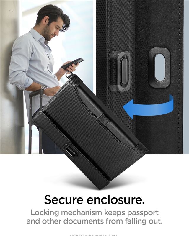 Ο μηχανισμός ασφαλούς κλειδώματος προσφέρει έξτρα ασφάλεια, αποτρέποντας την απώλεια σημαντικών εγγράφων, ενώ ο ενσωματωμένος δακτύλιος D σας επιτρέπει να συνδέσετε το πορτοφόλι με καραμπίνερ ή AirTag για εύκολη πρόσβαση. Με το Universal Passport Holder της Spigen, κάθε ταξίδι γίνεται πιο ασφαλές και άνετο, προσφέροντας σας την απόλυτη ηρεμία και οργάνωση.