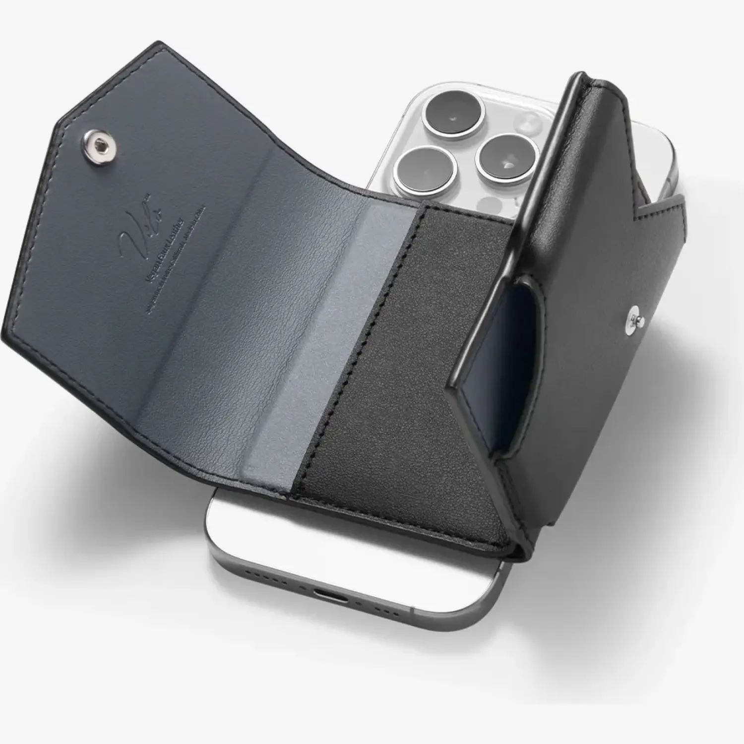 Κατασκευασμένο από υψηλής ποιότητας premium vegan δέρμα velo, με υπέροχη αίσθηση και κράτημα, ενώ τοποθετείται πολύ εύκολα στο πίσω μέρος του κινητού σας, χάρη στο ισχυρό ενσωματωμένο μαγνήτη. Επιπλέον, διαθέτει τριπλή διάταξη, σαν ένα κομψό κλασικό πορτοφόλι με κούμπωμα.
