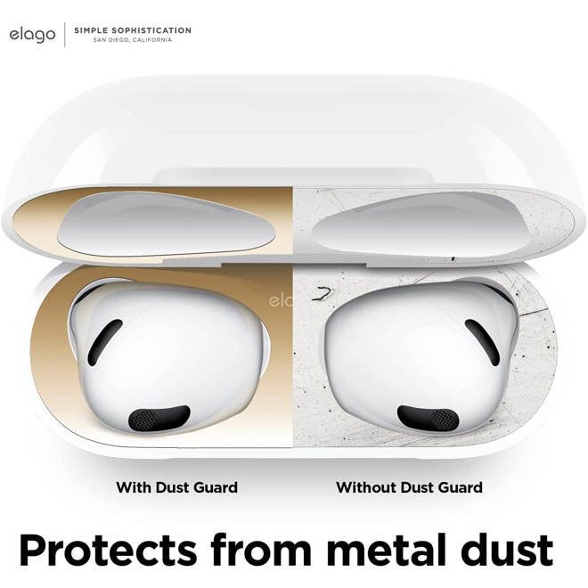 Η elago φέρνει για εσάς το Dust Guard, ένα απαραίτητο αξεσουάρ σχεδιασμένο για τα αγαπημένα σας Airpods 3rd Gen, για να τα διατηρήστε πάντα όμορφα και καθαρά, δίνοντας τους μία πολυτελή εμφάνιση. Με εξαιρετικά λεπτό πάχος μόλις 0,04mm, δεν εμποδίζει καμία από τις λειτουργίες των Airpods 3rd Gen.