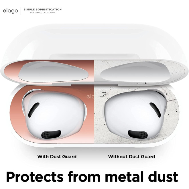 Η elago φέρνει για εσάς το Dust Guard, ένα απαραίτητο αξεσουάρ σχεδιασμένο για τα αγαπημένα σας Airpods 3rd Gen, για να τα διατηρήστε πάντα όμορφα και καθαρά, δίνοντας τους μία πολυτελή εμφάνιση. Με εξαιρετικά λεπτό πάχος μόλις 0,04mm, δεν εμποδίζει καμία από τις λειτουργίες των Airpods 3rd Gen.