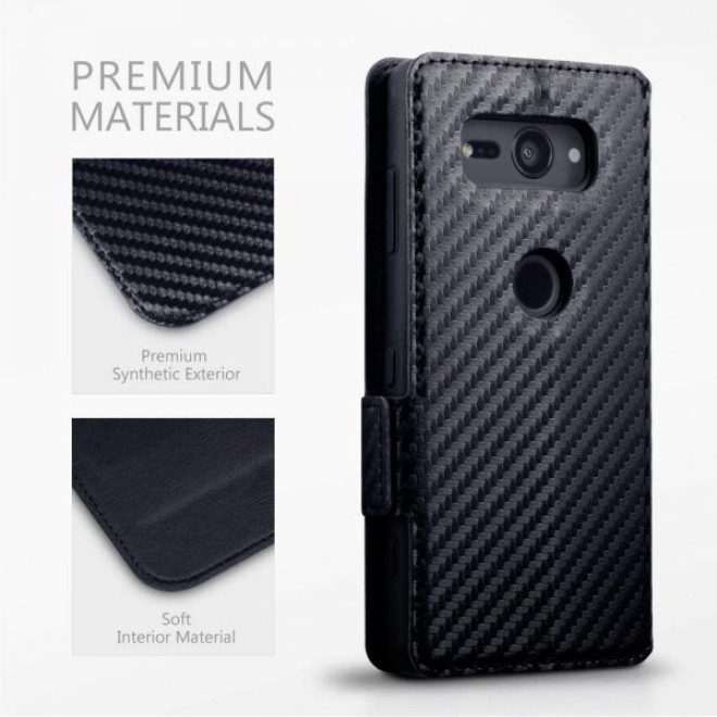Η θήκη - πορτοφόλι είναι ειδικά σχεδιασμένη για το Sony Xperia XZ2 Compact, ενώ διαθέτει 2 θήκες για πιστωτικές κάρτες. Με προσεγμένη ραφή και μαγνητικό κλιπ για ευκολότερη χρήση.