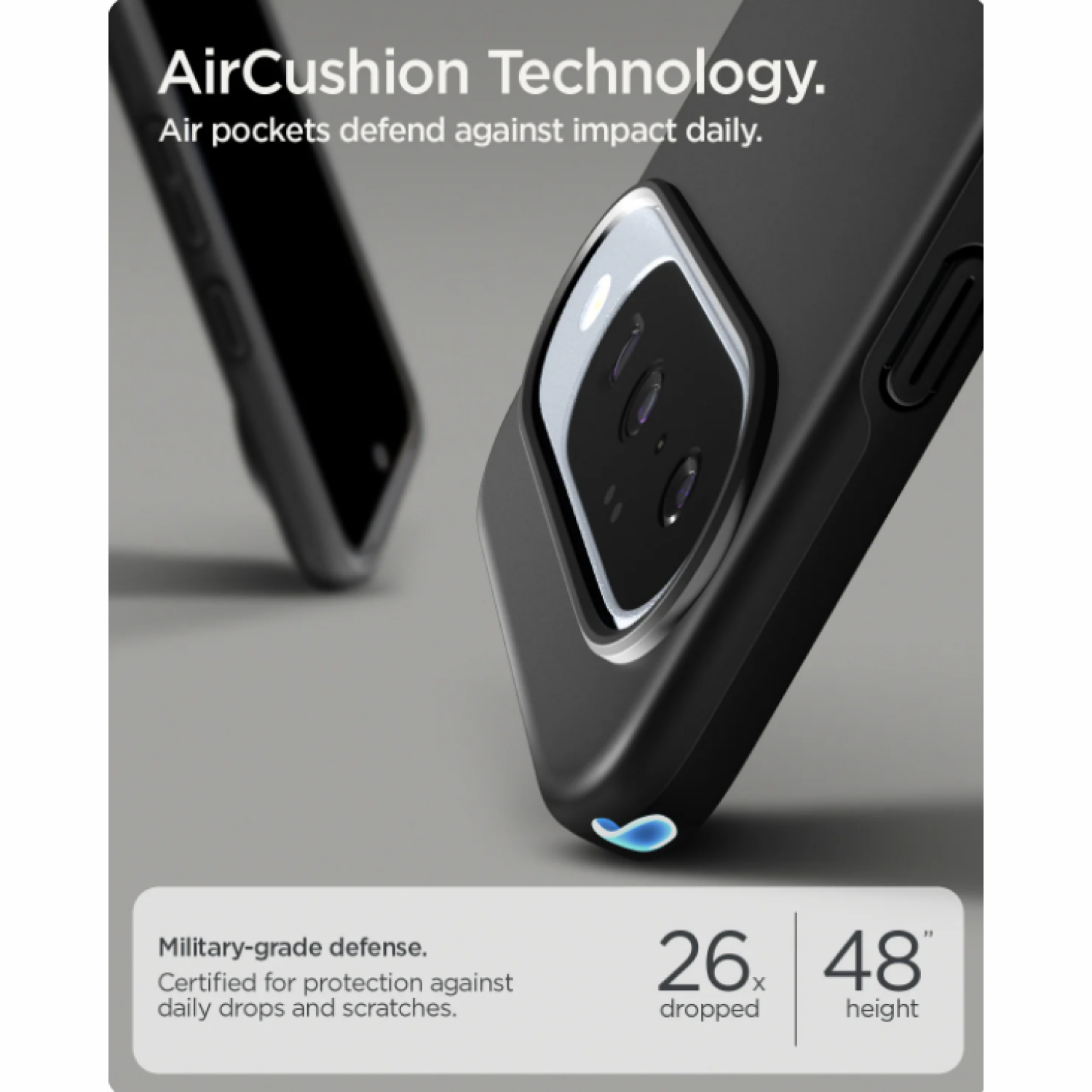 Διαθέτει προστασία στρατιωτικού επιπέδου με τεχνολογία Air Cushion, με ενσωματωμένες "τσέπες" αέρα οι οποίες απορροφούν τους κραδασμούς και προσφέρουν ασφάλεια στις, ενώ χάρη στην προστασία στρατιωτικού επιπέδου, αντέχει σε 26 πτώσεις από ύψος 1.2 μέτρα, ενώ παράλληλα προφυλάσσει από γρατζουνιές και φθορές της καθημερινότητας.