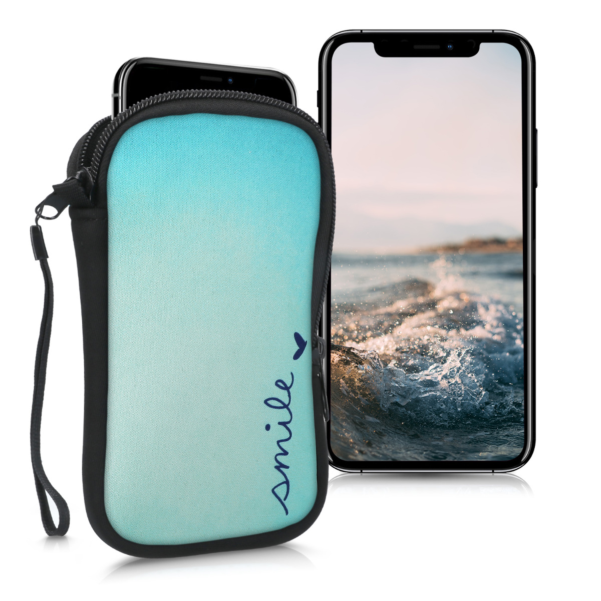 KW Θήκη - Πουγκί Νεοπρενίου με Φερμουάρ για Smartphones έως 6.5" - Blue / Turquoise (30226.3.07)