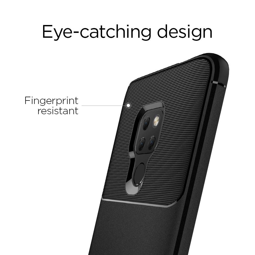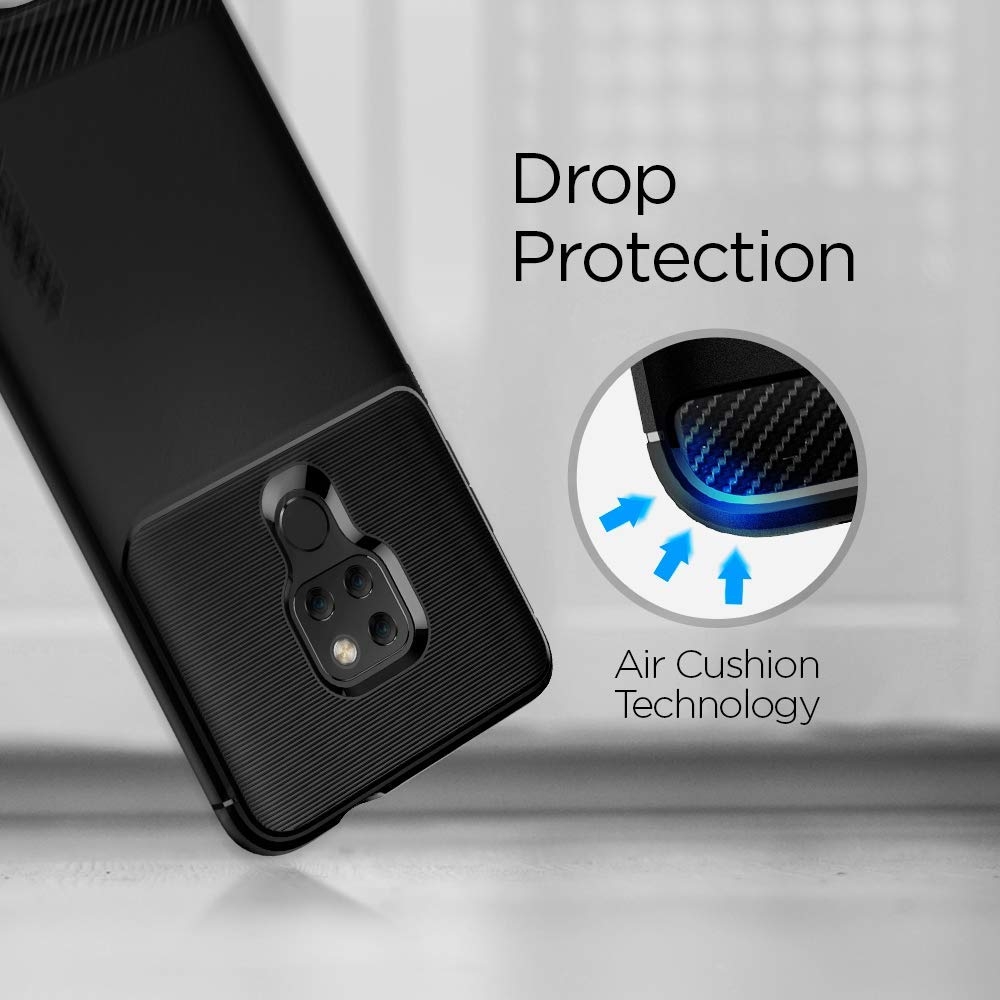 Κατασκευασμένη από θερμοπλαστική πολυουρεθάνη (TPU) απορροφά τους κραδασμούς με τη βοήθεια της τεχνολογίας Air Cushion, είναι ελαστική με φινίρισμα από ανθρακονήματα, εσωτερικά κυψελοειδής και εύκαμπτη προστατεύοντας το Mate 20 από γρατζουνιές, φθορές, πτώσεις ή χτυπήματα.
