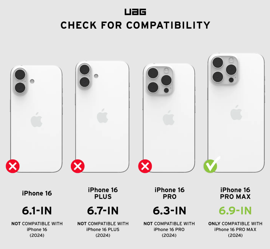 Η θήκη είναι συμβατή μόνο με το iPhone 16 Pro Max και όχι με το iPhone 16, 16 Pro ή 16 Plus.