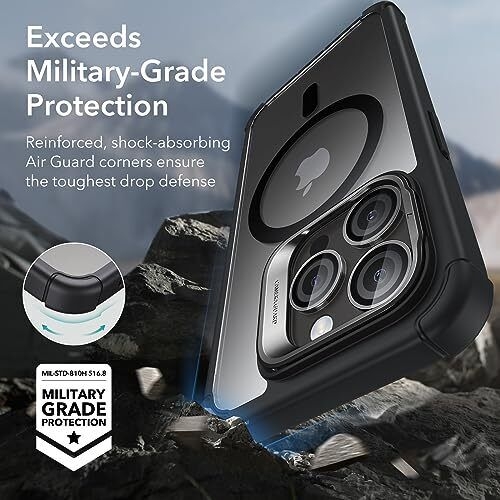 Λόγω των ιδιοτήτων του, το πολυανθρακικό στρώμα παρέχει καλή προστασία από πιθανά ατυχήματα στην καθημερινή χρήση, επίσης η θήκη ταιριάζει απόλυτα στο iPhone 15 Pro. Πληροί το στρατιωτικό πρότυπο αντίστασης MIL STD 810Η 516.8, που σημαίνει ότι είναι ανθεκτικό στις πτώσεις, ενώ ταυτόχρονα είναι ενισχυμένο με γωνίες Air-Guard που απορροφούν τους κραδασμούς.