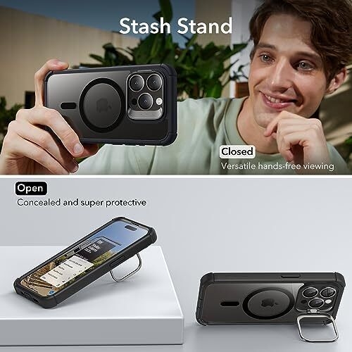 Η θήκη διαθέτει ένα εύκαμπτο και απορροφητικό στρώμα, ανυψωμένη στεφάνη στην οθόνη και στην κάμερα για πρόσθετη προστασία, ενώ το μεταλλικό χείλος της κάμερας μετατρέπεται σε stand και περιστρέφεται από 15 μοίρες μέχρι και 85 μοίρες. Αποτελεί τον ιδανικό τρόπο για την προστασία και μεταφορά του αγαπημένου σας iPhone 15 Pro και δεν προσθέτει όγκο στην συσκευή σας!