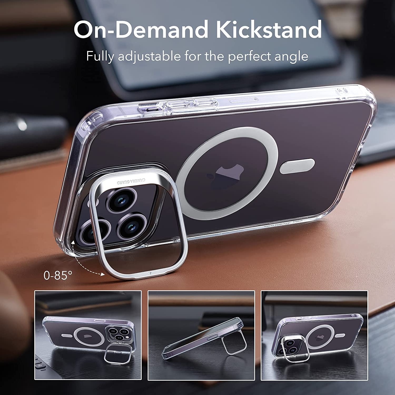 Η θήκη διαθέτει ένα εύκαμπτο και απορροφητικό στρώμα, ανυψωμένη στεφάνη στην οθόνη 1.3 mm και στην κάμερα 1.2mm για πρόσθετη προστασία, ενώ το μεταλλικό χείλος της κάμερας μετατρέπεται σε stand και περιστρέφεται μέχρι και 85 μοίρες. Αποτελεί τον ιδανικό τρόπο για την προστασία και μεταφορά του αγαπημένου σας iPhone 14 Pro Max και δεν προσθέτει όγκο στην συσκευή σας!