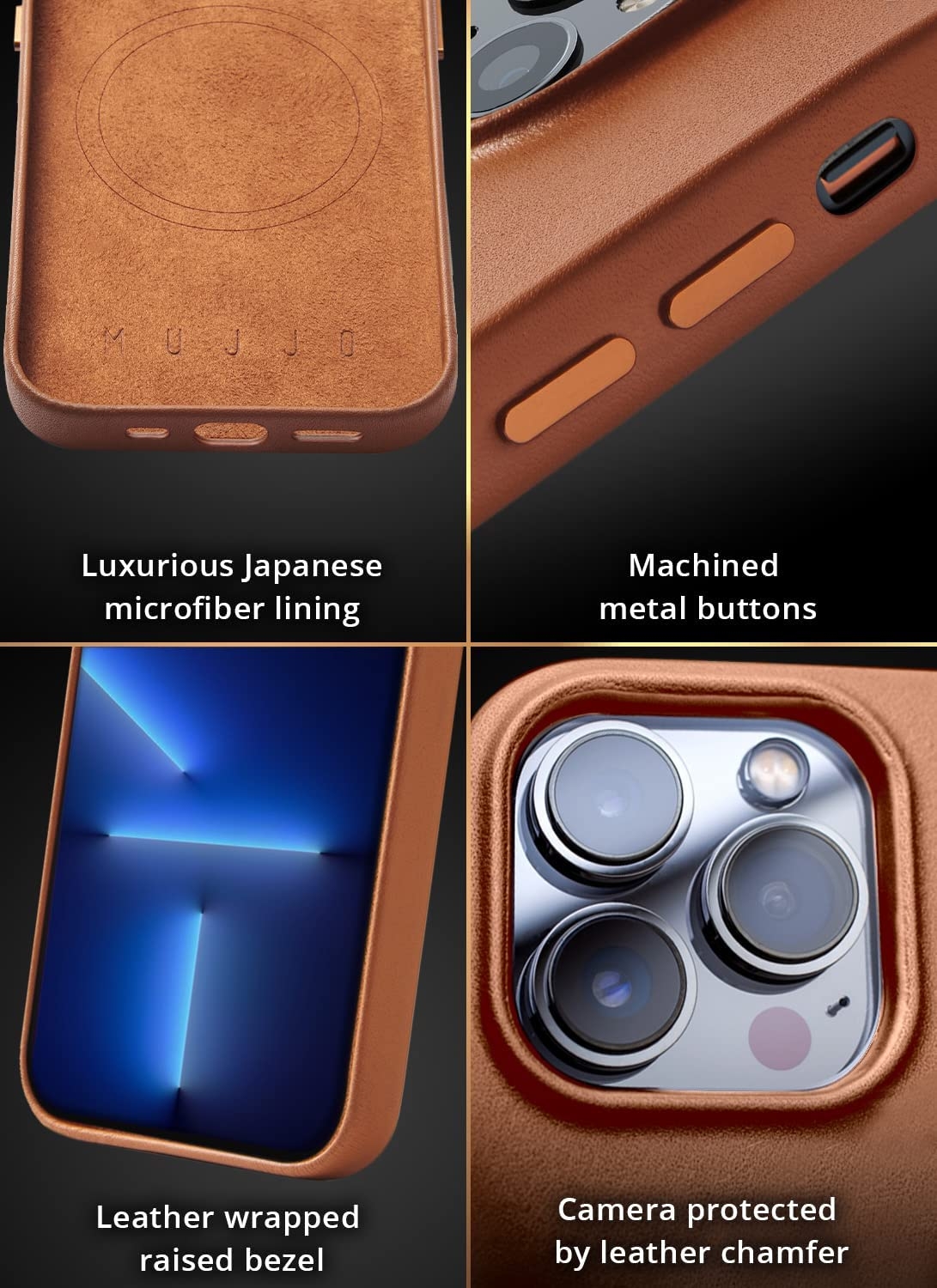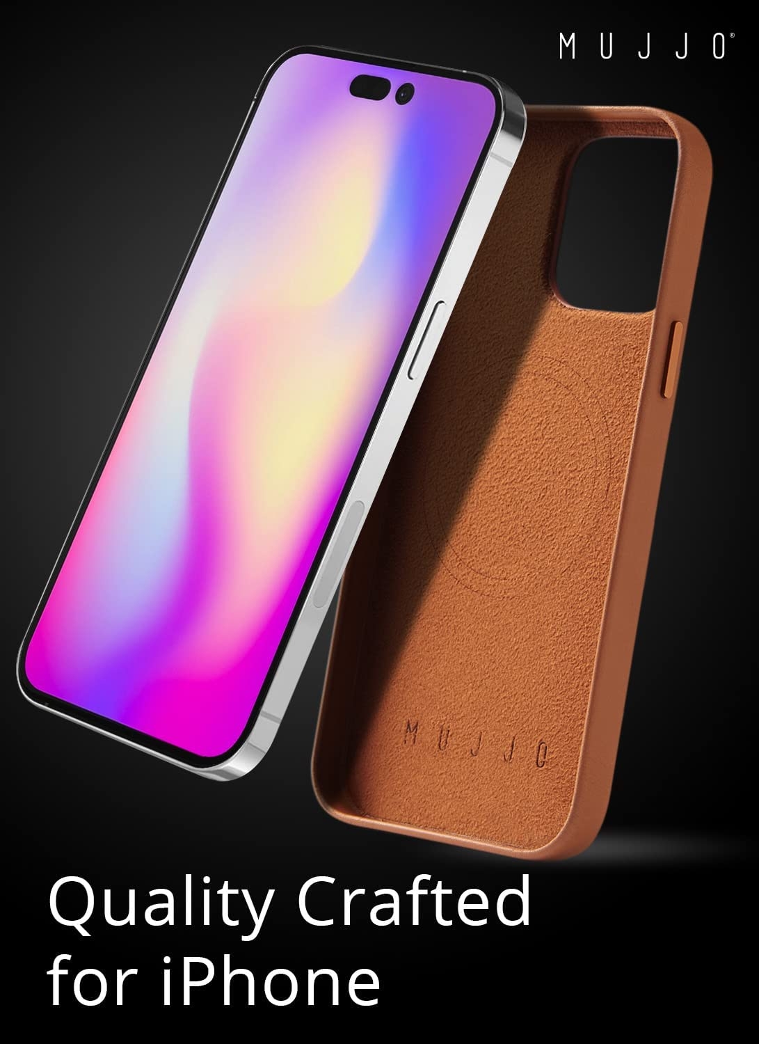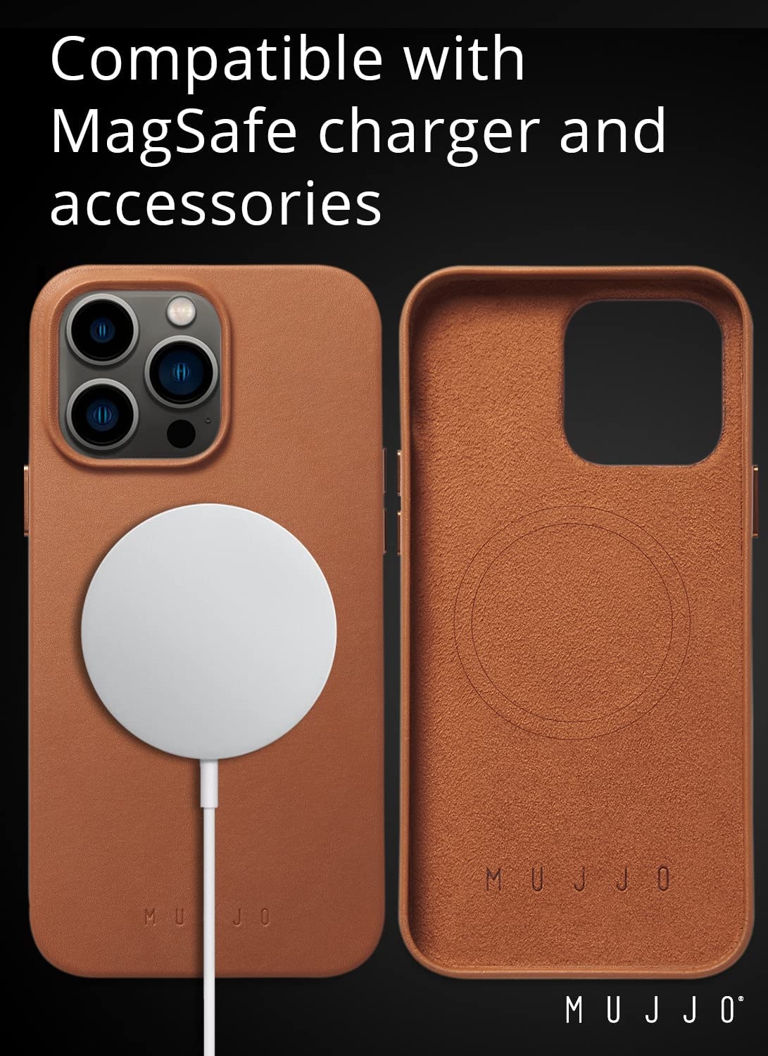 Πρόκειται για μία χειροποίητη κομψή θήκη, σχεδιασμένη για να κρατάει το iPhone 14 Pro Max σας με ασφάλεια. Είναι κατασκευασμένη από τα χαρακτηριστικής ποιότητας δεψασμένα δέρματα της MUJJO. Διαθέτει ενσωματωμένο μαγνήτη συμβατό με την ασύρματη φόρτιση MagSafe και με την προσάρτηση σε αξεσουάρ MagSafe.