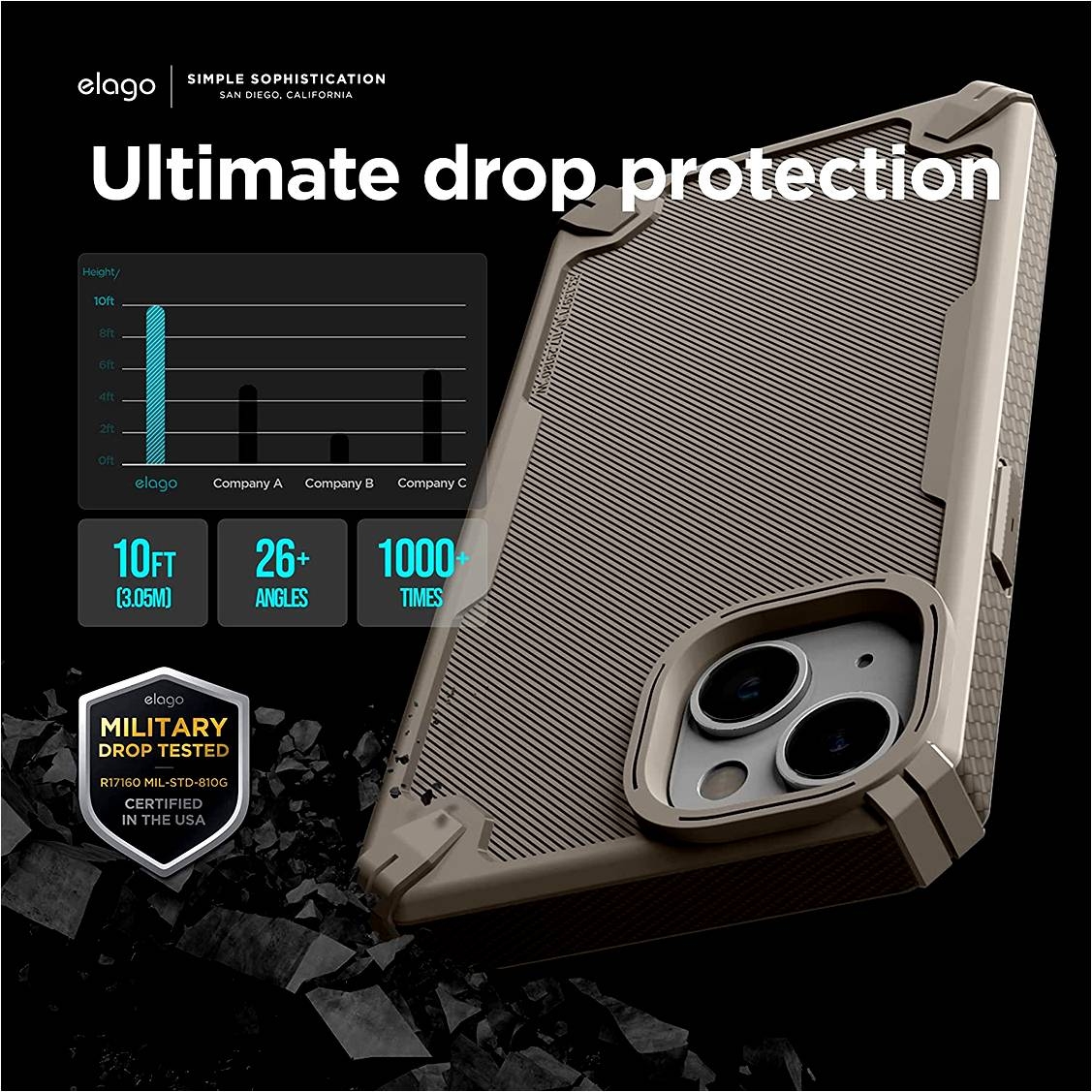 Προστατέψτε τη συσκευή σας από πτώσεις, έχοντας μια απόλυτα ανθεκτική θήκη, καθώς διαθέτει πιστοποίηση R17160 MIL-STD-810G, στρατιωτικών προδιαγραφών! Αυτό σημαίνει ότι έχει περάσει από δοκιμασίες πτώσεων πάνω από 1000 φορές, από ύψος 3 μέτρων και από 26 γωνίες.