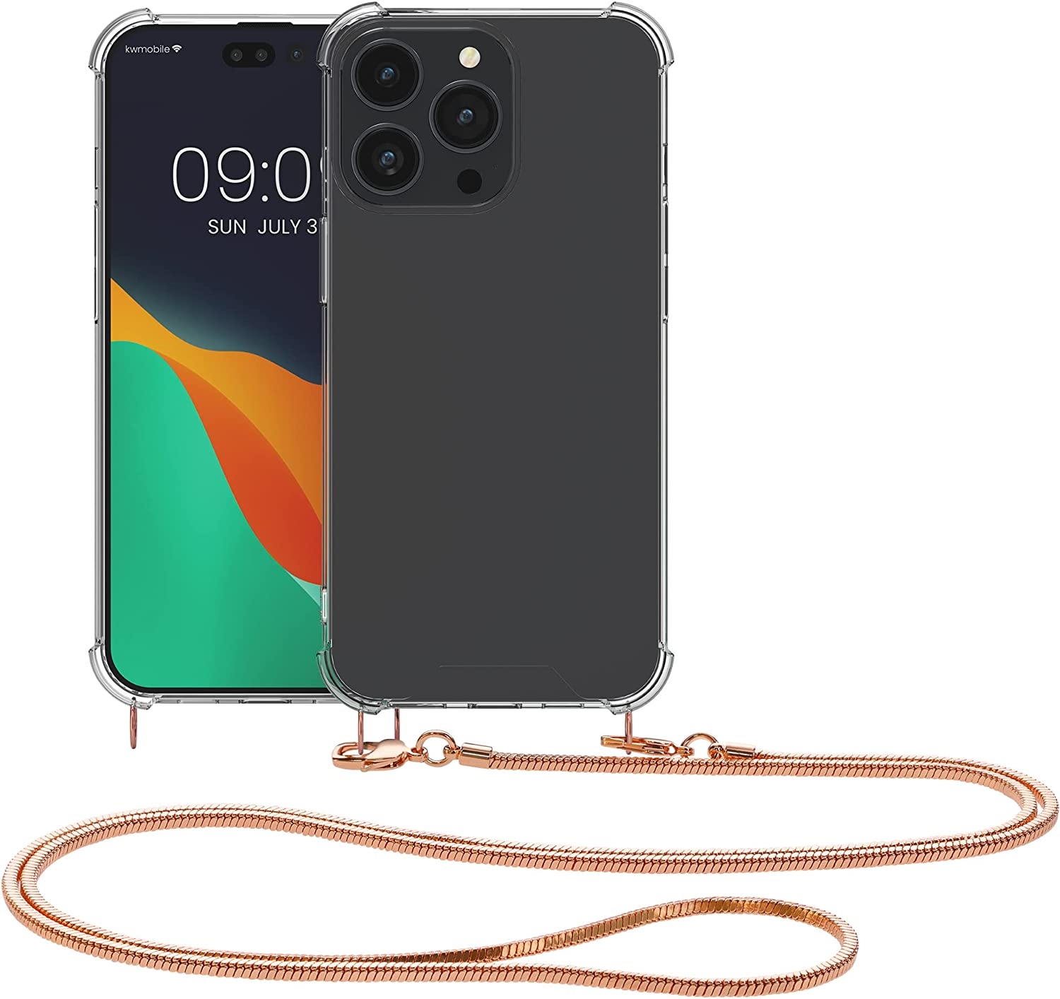 KWmobile Διάφανη Θήκη Σιλικόνης με Μεταλλικό Λουράκι Λαιμού Apple iPhone 14 Pro Max - Transparent / Rose Gold (59105.81)