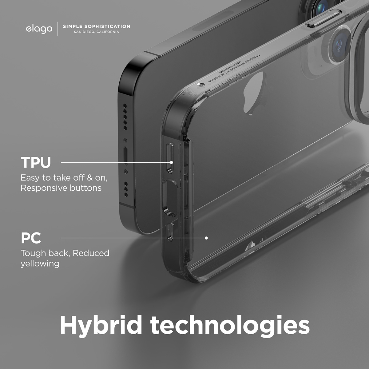 H θήκη Hybrid της Elago, είναι ειδικά σχεδιασμένη για να προστατέψει μοναδικά το αγαπημένο σας iPhone 14 Pro. Καλύπτει ολόκληρο το τηλέφωνο, συμπεριλαμβανομένων των κάτω κουμπιών.
