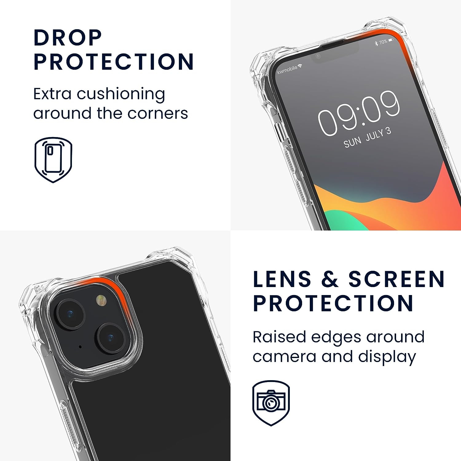 Προστατέψτε το iPhone 14 / 13, από με αυτή την κομψή θήκη της KW. Κατασκευασμένη από σκληρή διάφανη πλάτη PC και ενισχυμένες γωνίες με TPU Bumper περιμετρικά για καλύτερο κράτημα, ώστε να προστατεύει τη συσκευή σας από πτώσεις, χτυπήματα ή γρατσουνιές, οι οποίες μπορεί να προκληθούν κατά την καθημερινή χρήση.